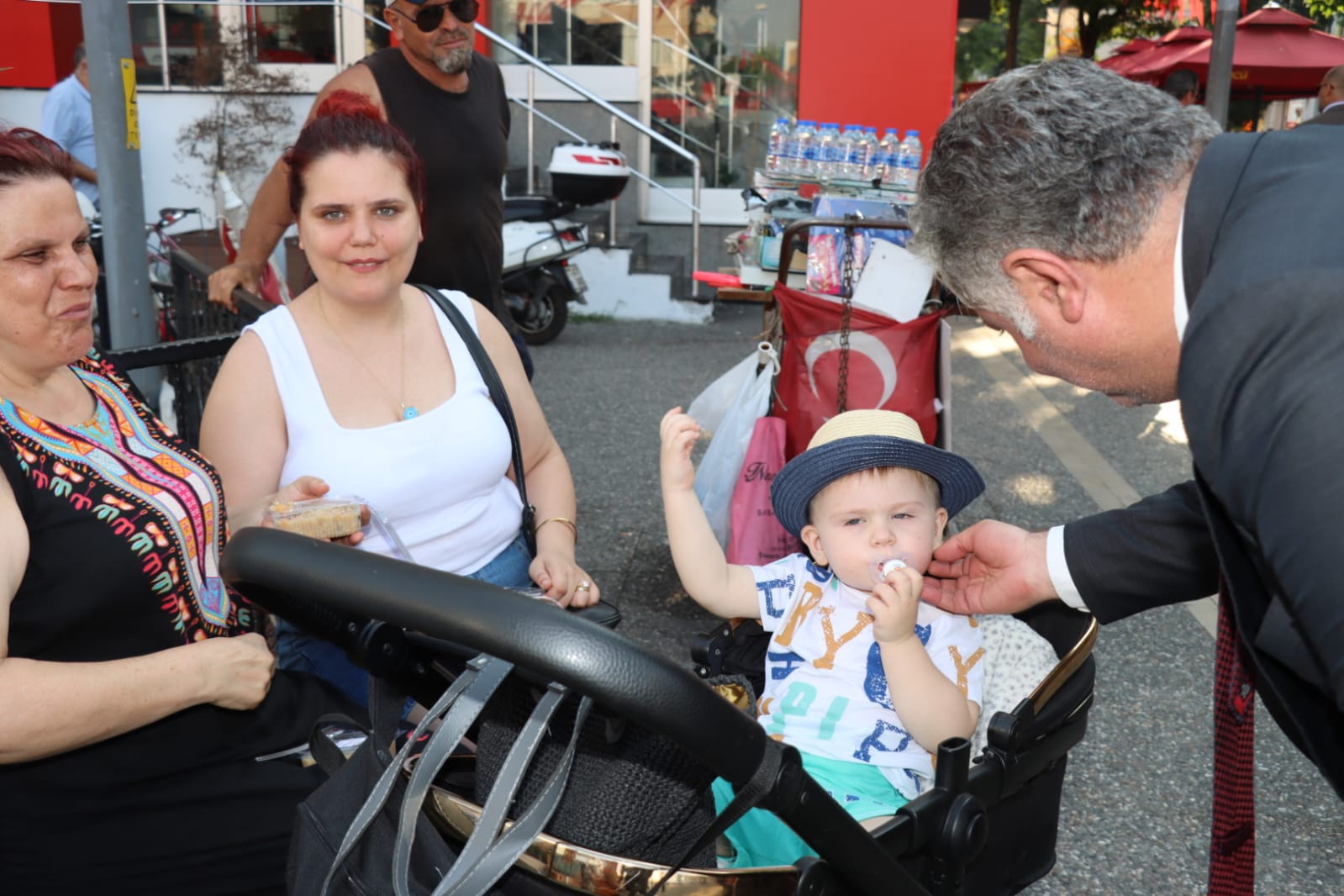 Yalova Belediye Başkanı Mehmet Gürel, Muharrem Ayı vesilesiyle düzenlenen aşure etkinliğinde vatandaşlarla buluştu. Uğur Mumcu Kültür Merkezi önünde kurulan ikram çadırlarında gerçekleştirilen etkinlikte, Başkan Gürel hemşehrilerine aşure ikram ederek, Türk Bayrağı hediye etti.