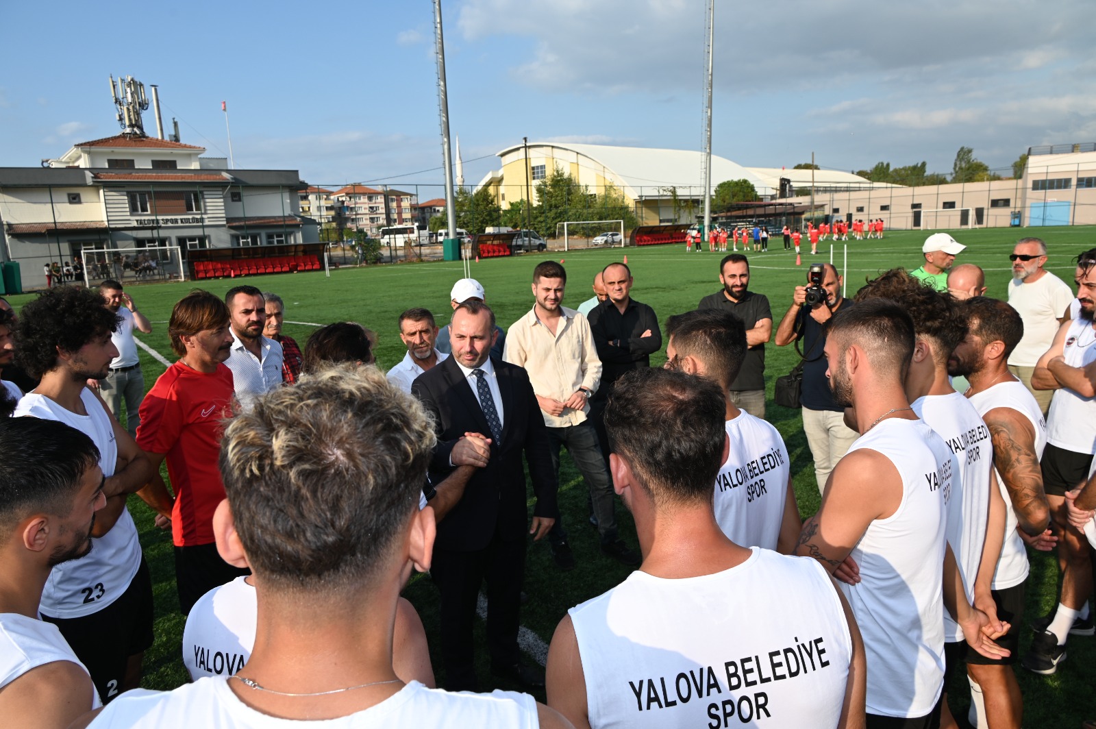 Yalovaspor tesislerinde yeni sezon hazırlıklarına devam eden Yalovaspor’u ziyaret eden Başkan Tutuk’u, Yalovaspor Başkanı İsmail Kaya ve yönetim kurulu üyeleri karşıladı. Takım hakkında bilgiler alan Başkan Tutuk antrenman sahasına geçerek Yalovaspor’lu oyuncularla bir araya geldi.