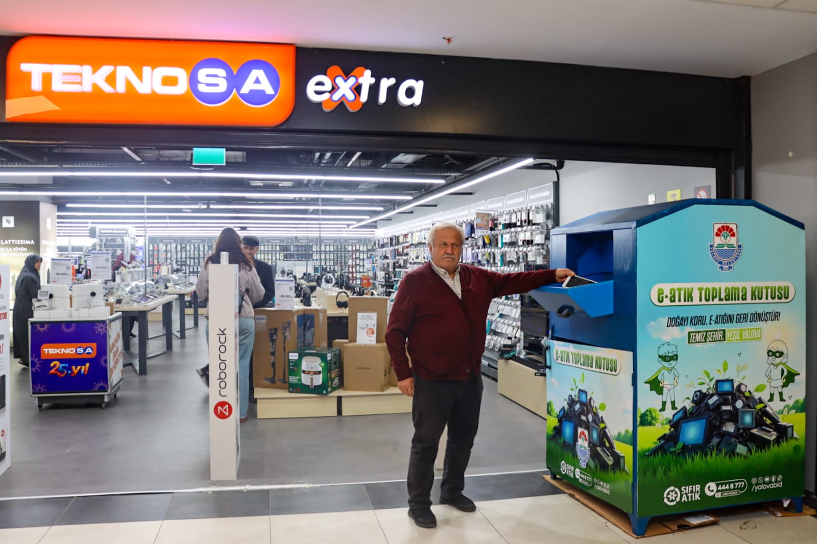 Yalova Belediyesi’nin, 14 Ekim Dünya E-Atık Günü kapsamında Teknosa iş birliğiyle düzenlediği “Doğayı Koru, E-Atığını Geri Dönüştür” etkinliği büyük ilgi gördü. Vatandaşlar, kullanılmayan elektronik eşyalarını geri dönüşüme kazandırmak için Yalova Vega AVM Teknosa Mağazası’na getirdi.