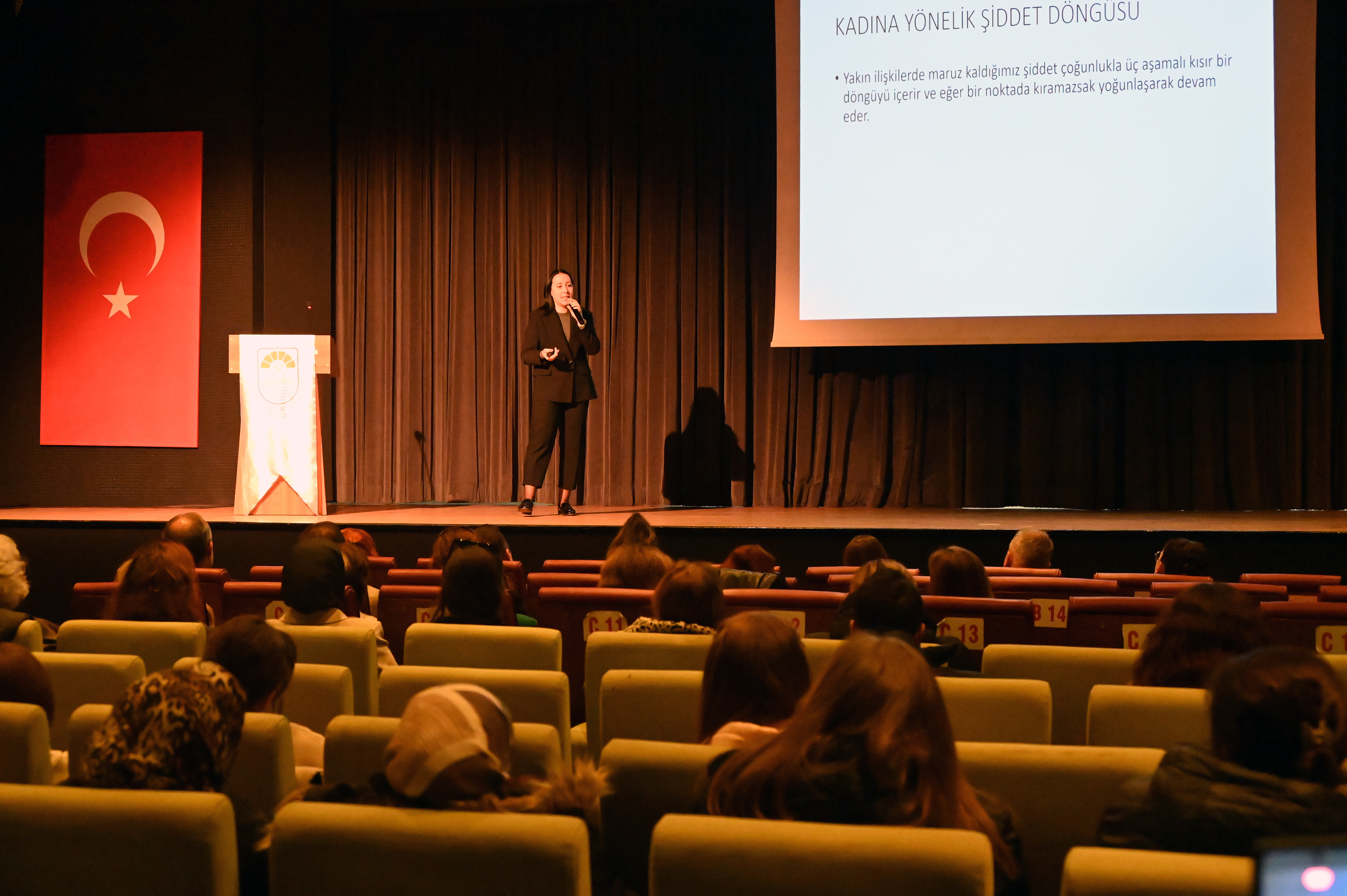 Raif Dinçkök Kültür Merkezi Özgecan Aslan Salonu’nda gerçekleştirilen etkinlik, Yalova Belediyesi Tiyatro Sanatçısı Funda Yıldız’ın rol aldığı “Kadına Şiddet” temalı film gösterimi ile başladı. Ardından, Yalova Belediyesi Kadın ve Aile Biriminden Psikolog Nazmiye Hilal Özbek Taş, kadına yönelik şiddetin psikolojik etkileri ve mücadele yolları hakkında bilgilendirici bir sunum yaptı. Yalova İl Emniyet Müdürlüğü Asayiş Şube Müdürlüğü Aile İçi ve Kadına Karşı Şiddetle Mücadele Büro Amirliği’nden Başkomiser Mert Kızıleniş, yasal süreçler ve şiddet mağdurlarına yönelik emniyet birimlerinin sağladığı destekler hakkında katılımcıları bilgilendirdi.