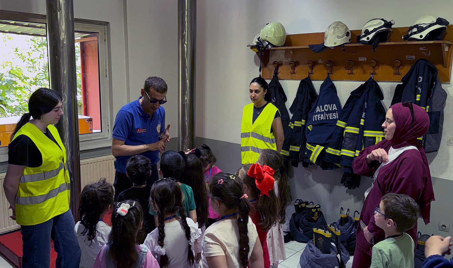 Yalova Öğretmen Yusuf Ziya Anaokulu öğrencileri, Yalova Belediyesi İtfaiye Müdürlüğü’nü ziyaret ederek hem eğlendi hem de öğrendi.