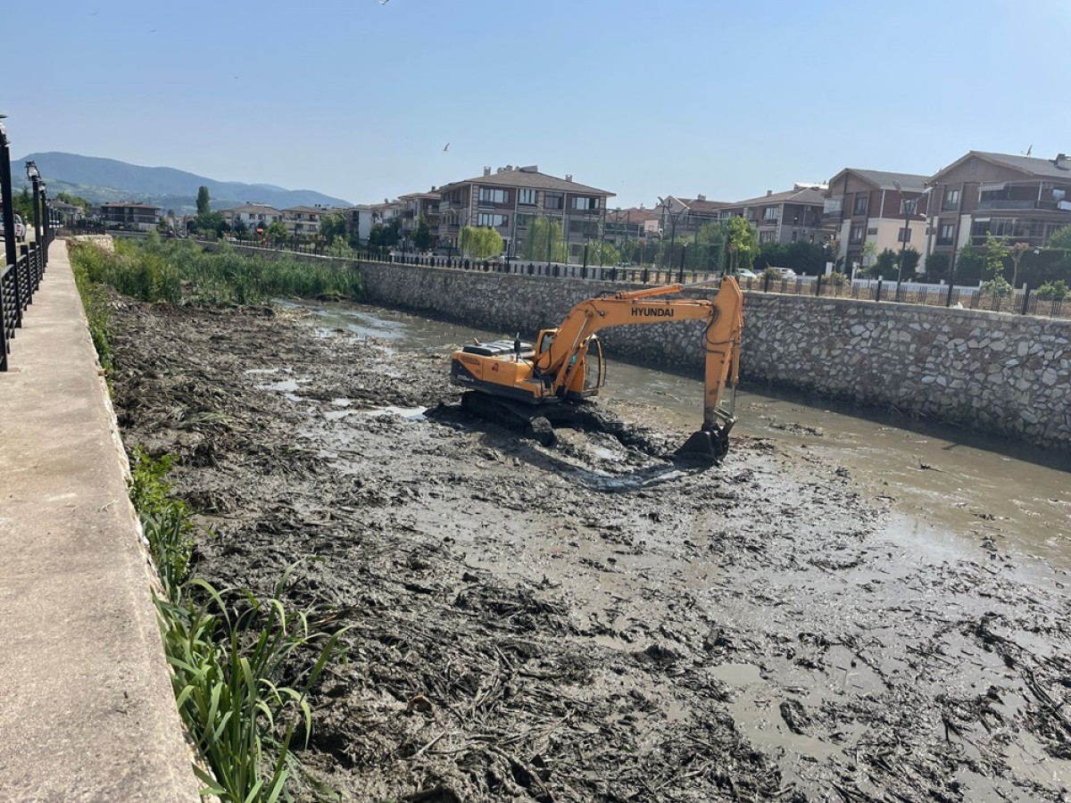 Yalova Belediyesi ekipleri, Safran Deresi üzerinde temizleme çalışması gerçekleştiriyor.