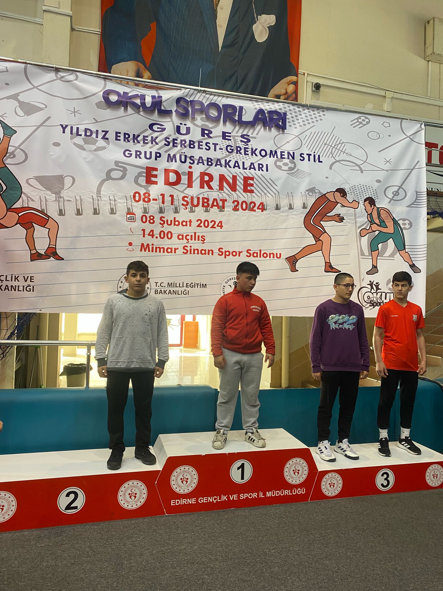 Edirne’de düzenlenen Yıldızlar Okul Sporları Grup Müsabakalarında 68 kiloda Yalova Belediyespor Güreş Kulübü adına mindere çıkan Serkan Tosun elde etmiş 3ncülükle bronz madalyanın sahibi oldu.