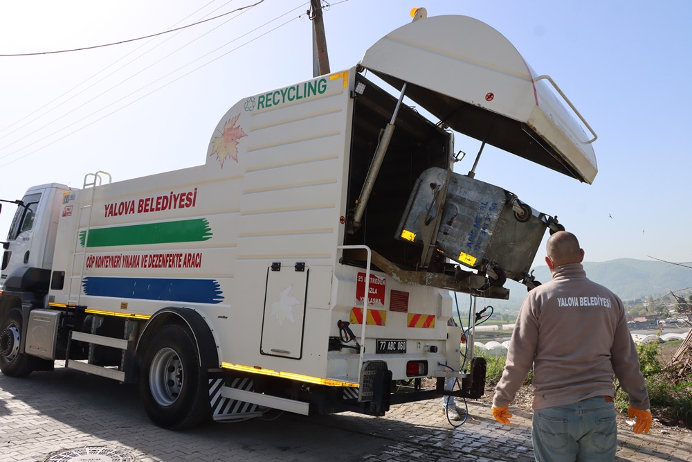 Ekipler, yol kenarlarında biriken toz ve çamuru su tankerleri ile yıkamasını gerçekleştirirken aynı zamanda çöp konteynerlerinin yıkama ve dezenfekte çalışmasını gerçekleştirdi.