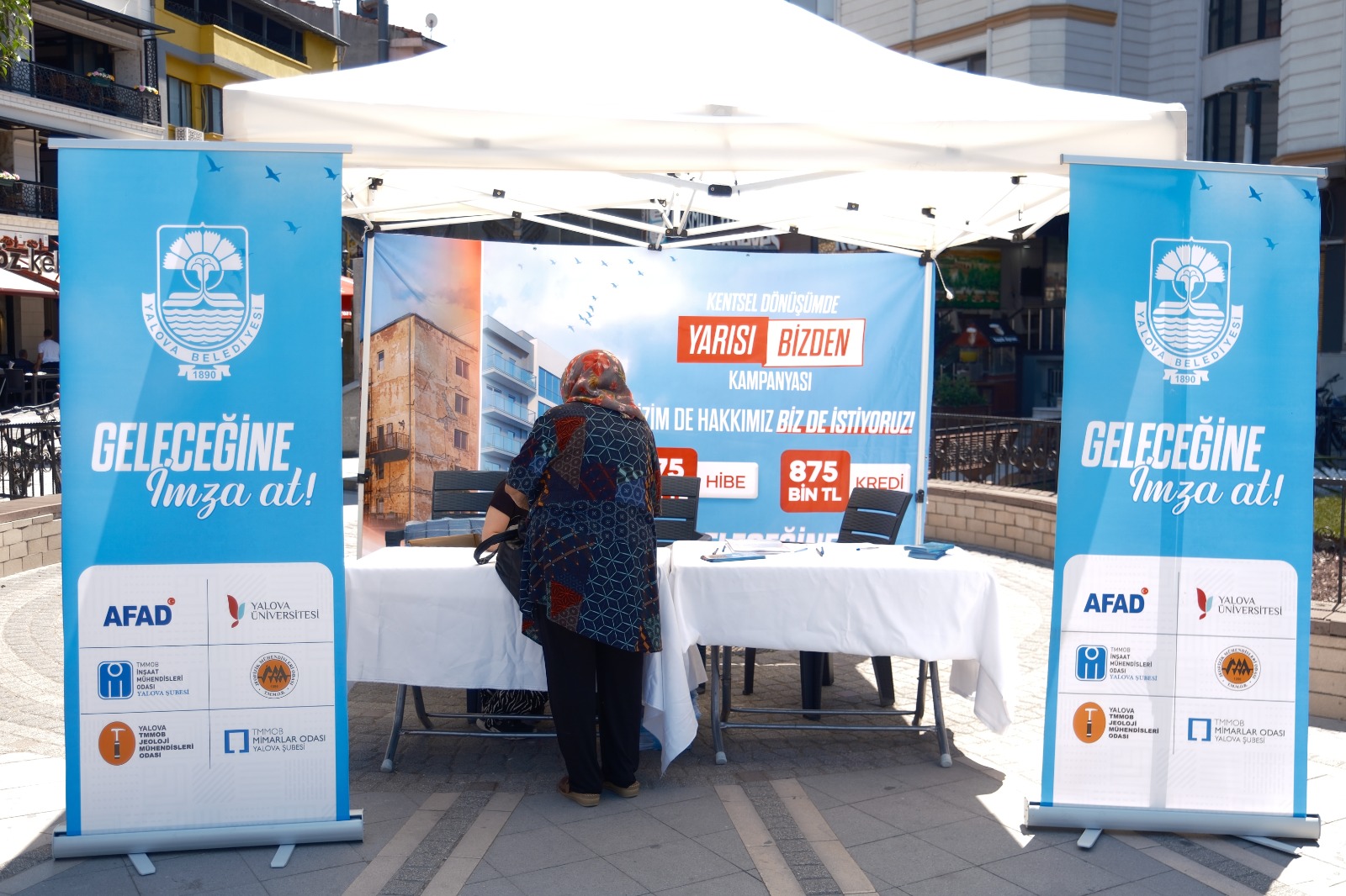 Yalova Belediye Başkanı Mehmet Gürel öncülüğünde Çevre Şehircilik ve İklim Değişikliği Bakanlığı’nın “Kentsel Dönüşümde Yarısı Bizden” uygulamasından Yalova’nın da faydalanabilmesi ve konuda dikkatin deprem kuşağı üzerinde bulunan Yalova’ya çekilmesi amacıyla başlatılan imza kampanyasına vatandaşlar destek oluyor. Geçtiğimiz Cuma günü Uğur Mumcu Kültür Merkezi önünde düzenlenen tanıtım programında ilk imzalar atılırken, kampanya şimdi kent genelinde stantlar aracılığıyla devam ediyor.