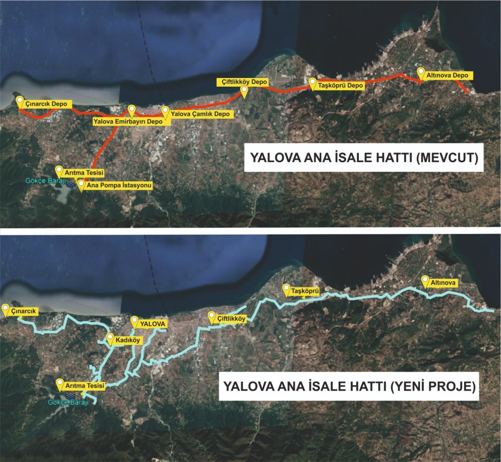 Ekim ayı sonunda Gökçe Barajında ilk kazma vurularak hattın inşasına başlanacak. Çınarcık’tan Altınova’ya kadar olan 70 km’lik hat kapsamında 24,1 km uzunluğunda HDPE PN10 boru ve 43,4 km uzunluğunda çelik boru içme suyu iletim hatları, 1 adet terfi merkezi, 50 m3 kapasiteli yeni beton su toplama yapısı, branşman yapısı, 3 adet basınç düşürme odası inşaatı ve çıkış yapısı, yaklaşık 41 m uzunluğunda HDPE PN10 çıkış boru hattı, her biri 4000 m3 kapasiteli 2 adet su deposu inşaatı, toplam yaklaşık 21.000 m3 kapasiteli 5 adet mevcut su deposu yenilenmesi ile yardımcı yapılar (vana odaları, manevra odaları, debimetre odaları vb.) yapılacak.