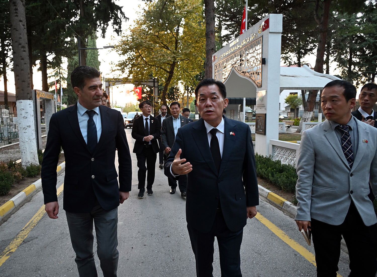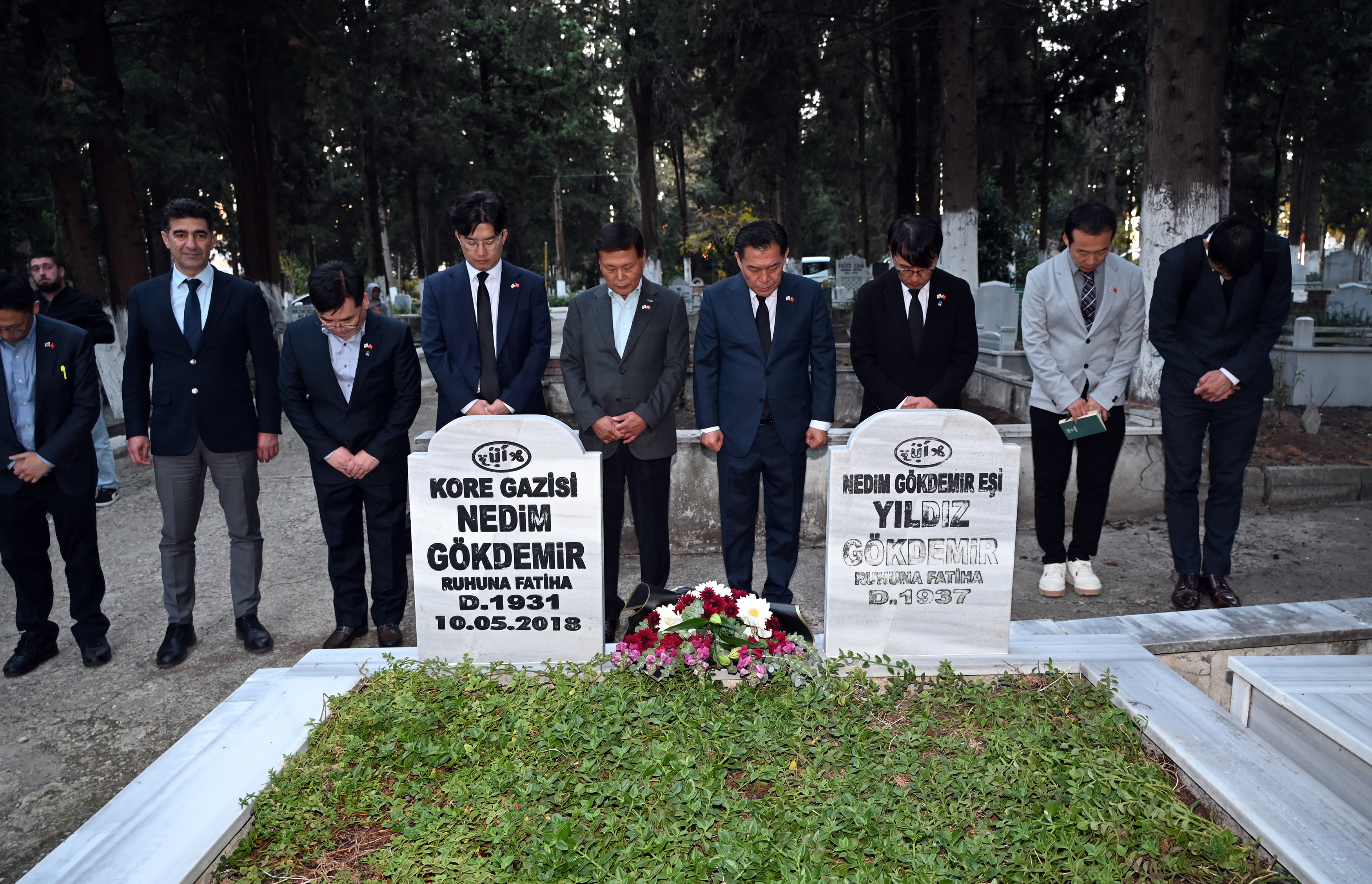 Suwon Belediye Başkanı Lee Jae Joon ve heyeti, ayağının tozuyla geldikleri Yalova’da ilk ziyaretlerini merhum Kore Gazilerinin kabirlerine yaptı. Koreli heyet, Başkan Yardımcısı Mesut Tutuğ ile birlikte Yalova Şehir Mezarlığı’nda merhum Kore Gazilerinin kabirlerini ziyaret ederek çiçek bıraktı. İki ülke ve iki şehir arasındaki tarihi bağların ve karşılıklı saygının daha da güçlenmesini simgeleyen bu ziyaret, takdirle karşılandı.