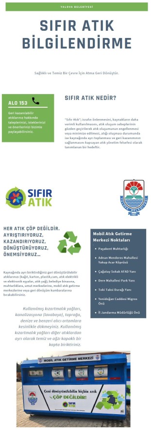 İlimiz Mahalli Çevre Kurulunun almış olduğu 18.11.2020 tarih ve 2020/32 sayılı kararı, Yalova İli Sıfır Atık Yönetim Planı Çevre ve Şehircilik İl Müdürlüğü web sitesinde (http://www.csb.gov.tr/iller/yalova) yayınlanmıştır. Mahalli Çevre Kurulunda alınan kararlar doğrultusunda hareket edilmesi, uygulama takvimine uyulması ve sıfır atık sistemine geçişlerin tamamlanması gerekmektedir.