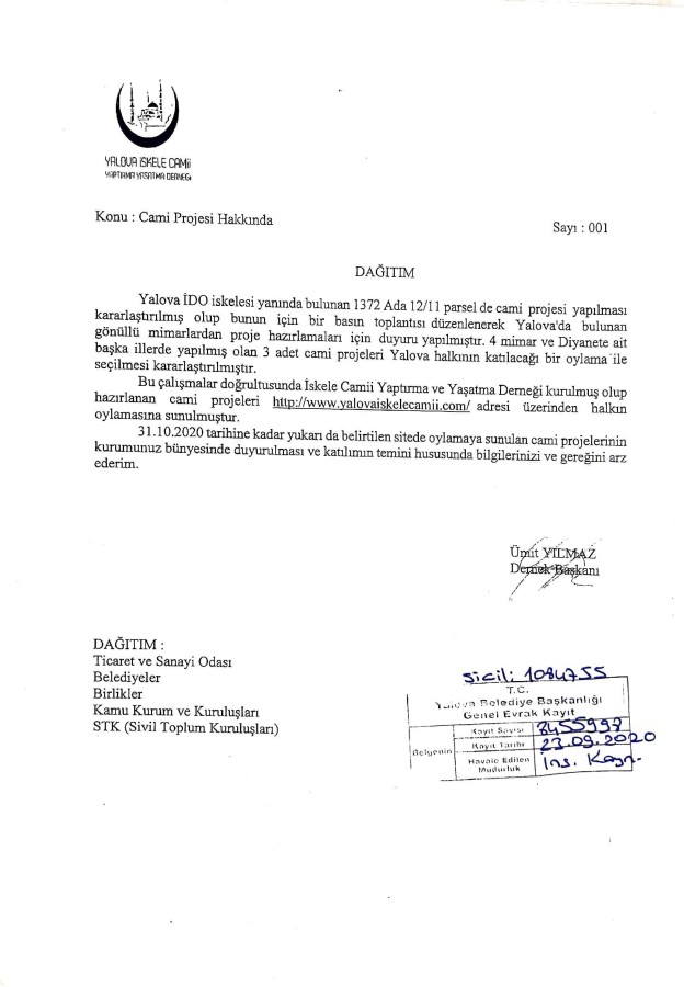 Yalova İskele Camii Yaptırma ve Yaşatma Derneği'nin Anketi Hakkında Bilgilendirme