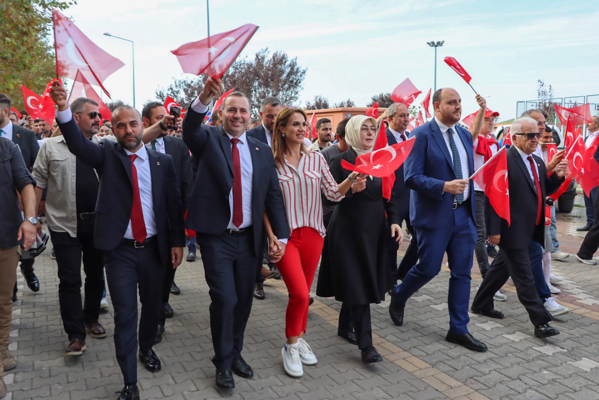 Deprem anıtı önünde toplanan 7’den 77’ye binlerce Yalovalı, Cumhuriyetin 100. yılı için yürüyüş gerçekleştirdi. Belediye Başkanı Mustafa Tutuk eşi Gökşen Tutuk ile programa katılırken temponun hiç düşmediği eşsiz bir yürüyüş yapıldı. Evlerinde ve işleri başında olan Yalovalılar da pencerelere, balkonlara ve sokaklara çıkarak kalabalığa tezahürat etti. Yürüyüş, 15 Temmuz Demokrasi ve Cumhuriyet Meydanı’ndaki tören alanında tamamlandı.
