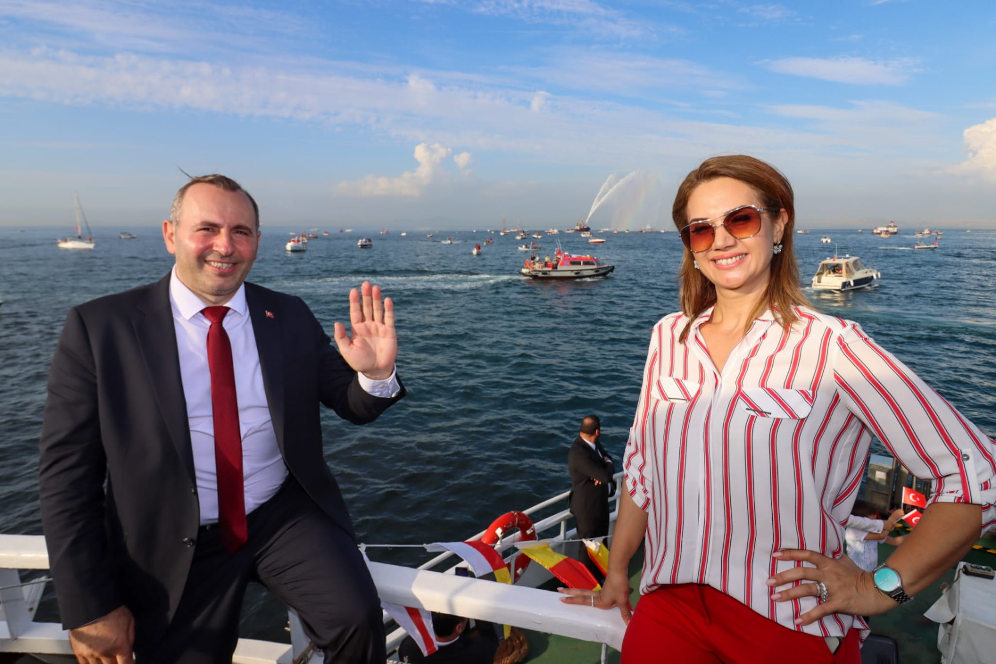Kutlama etkinlikleri kapsamında Türk bayraklarıyla donatılan aralarında gemi, sahil güvenlik, deniz polisi, turistik yatlar ve balıkçı teknelerinin de bulunduğu yaklaşık 100 aracın katılımıyla denizde korteji düzenlendi. Kortejin geçişi sırasında römorklar su takı gösterisi yaptı. Korteje, sahil şeridindeki vatandaşlar da yoğun ilgi gösterdi.