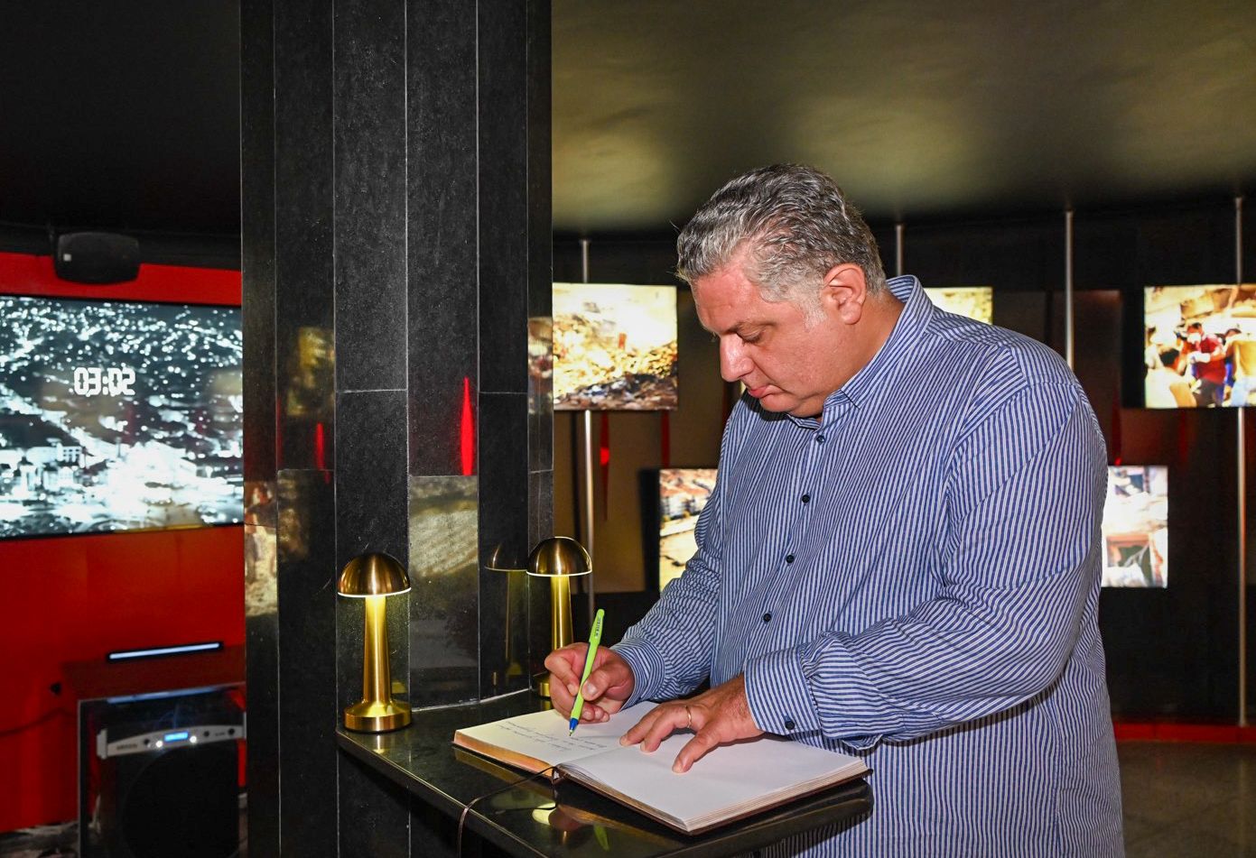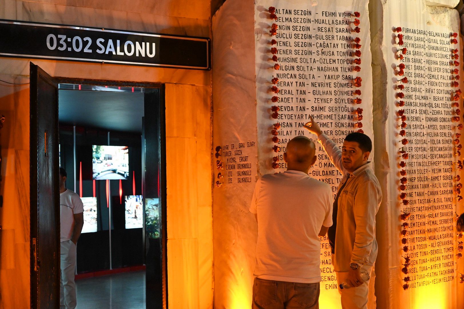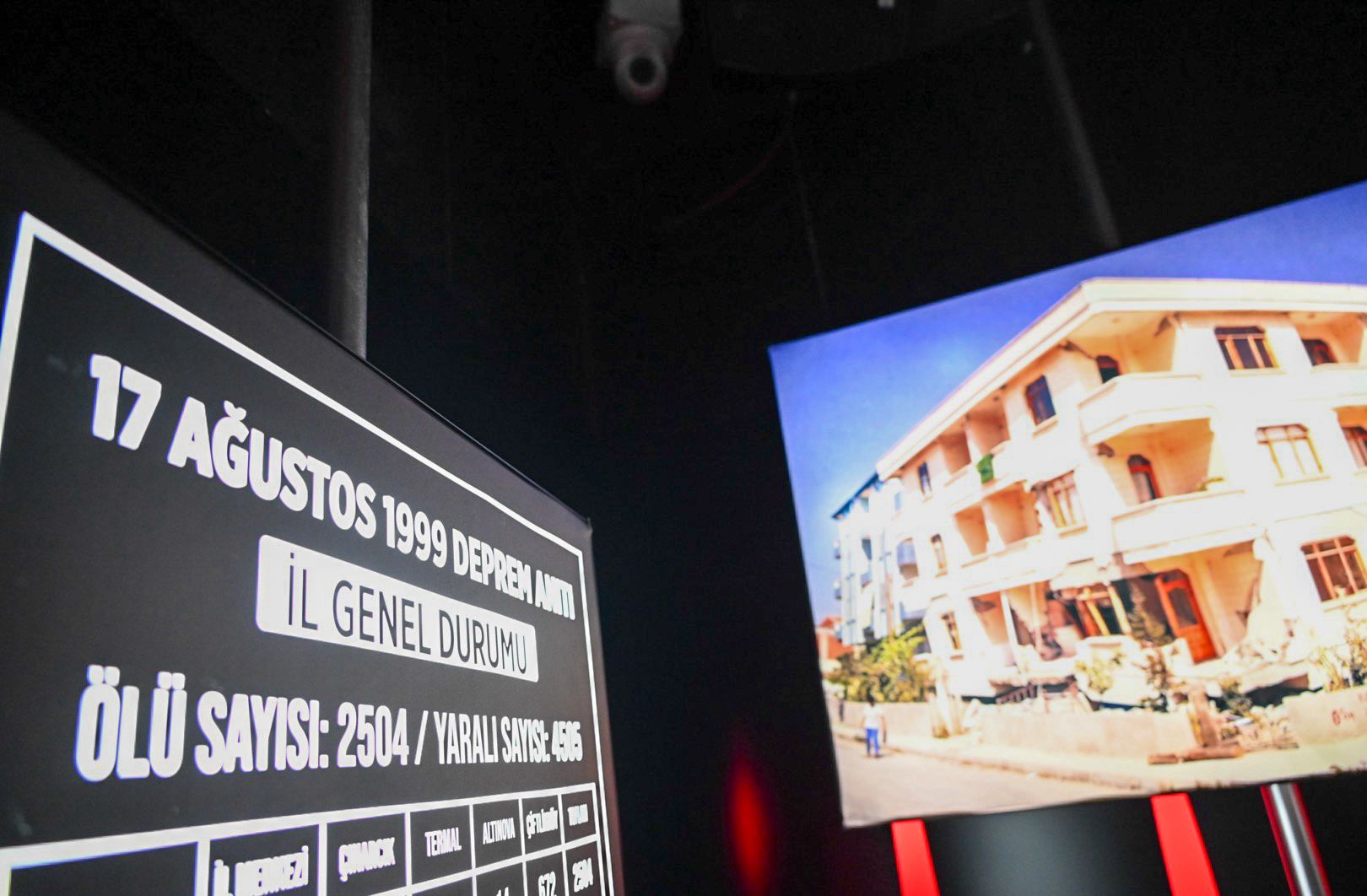 Burada kurulan stantları gezen katılımcılar, Deprem Anıtı içerisindeki “3.02” isimli salon ve “45 Saniye” isimli salonlardaki deprem sonrası kaydedilen fotoğraf ve görüntülerden oluşan sergiyi gezdi. Video gösteriminin de yapıldığı salonda anı defterini imzalayan Yalova Belediye Başkanı Mehmet Gürel, ardından vatandaşlarla sohbet ederek onlara helva, çorba, meşrubat ve su ikramında bulundu. Katılımcılar, depremde yaşamını yitiren 2 bin 504 Yalovalının adlarının yazılı olduğu anıttaki mermer sütunlara karanfil bıraktı.