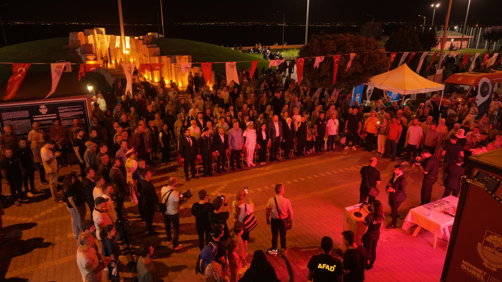 Etkinlikler, 15 Temmuz Demokrasi ve Cumhuriyet Meydanı’ndan başlayan sessiz anma yürüyüşü ile başladı. Yürüyüşün ardından Deprem Anıtı’nda düzenlenen törende depremde hayatını kaybeden vatandaşlarımız için saygı duruşunda bulunuldu, Kur’an-ı Kerim tilaveti ve dualar okundu.