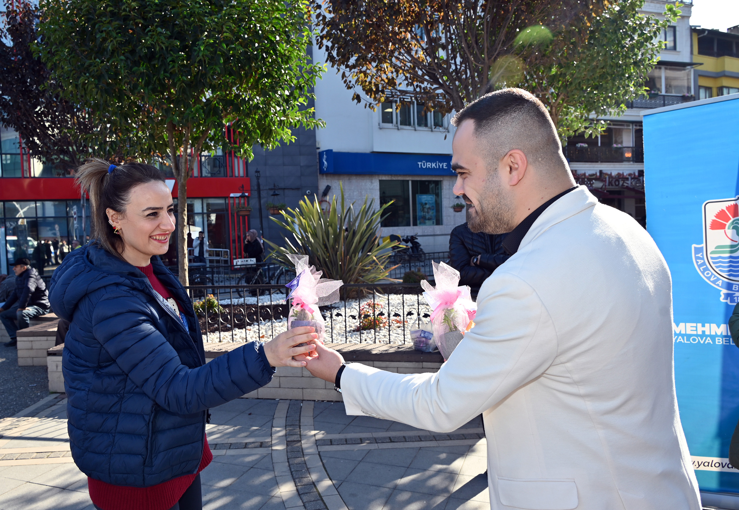 Yalova Belediyesi, 25 Kasım Kadına Yönelik Şiddete Karşı Uluslararası Mücadele Günü kapsamında farkındalık oluşturmak amacıyla anlamlı bir etkinliğe imza attı. Uğur Mumcu Kültür Merkezi önünde kurulan stantta, günün anısına kadınlara çiçek hediye edildi.