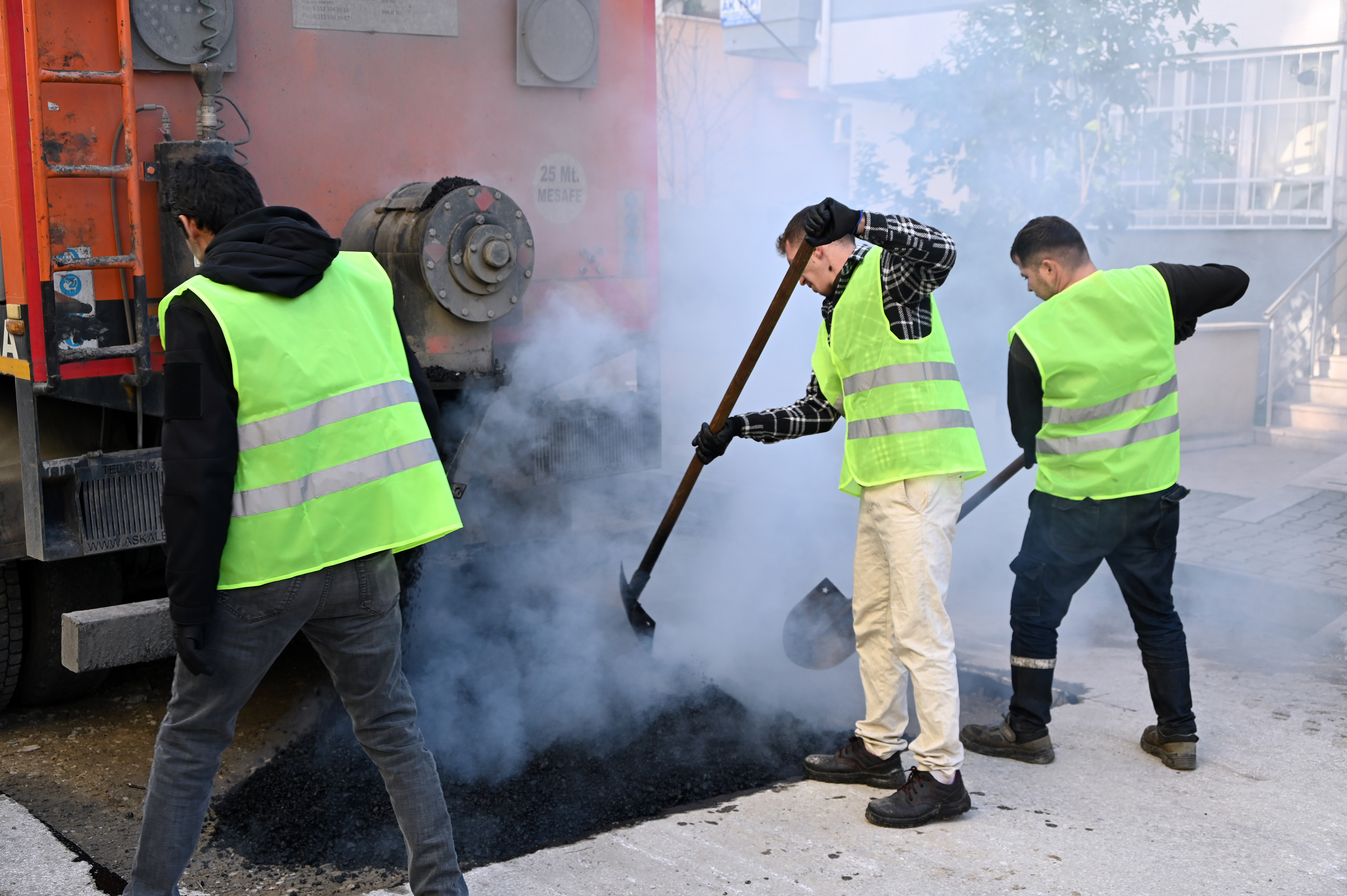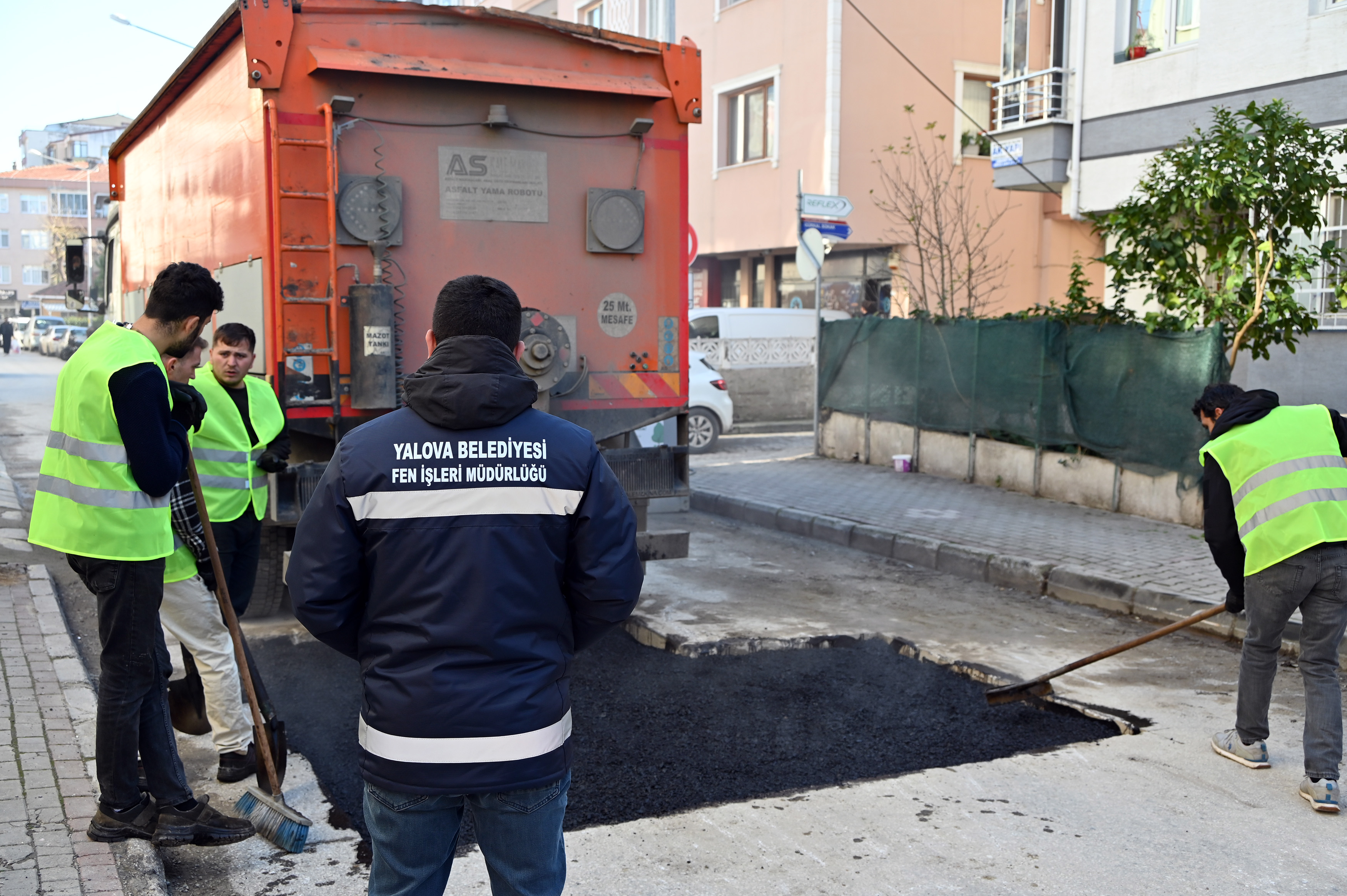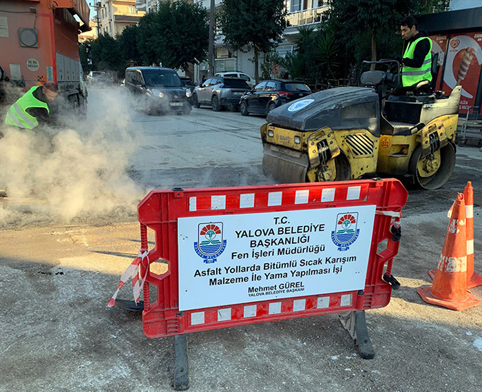 Yalova Belediyesi Fen İşleri Müdürlüğü, şehirdeki trafik güvenliğini artırmak amacıyla bozulmuş asfalt yollarda yama çalışmaları yapıyor. Sürücüler için sıkıntı yaratan ve trafik akışını olumsuz etkileyen bozuk yollar, ekipler tarafından sıcak asfalt yama ile onarılıyor.