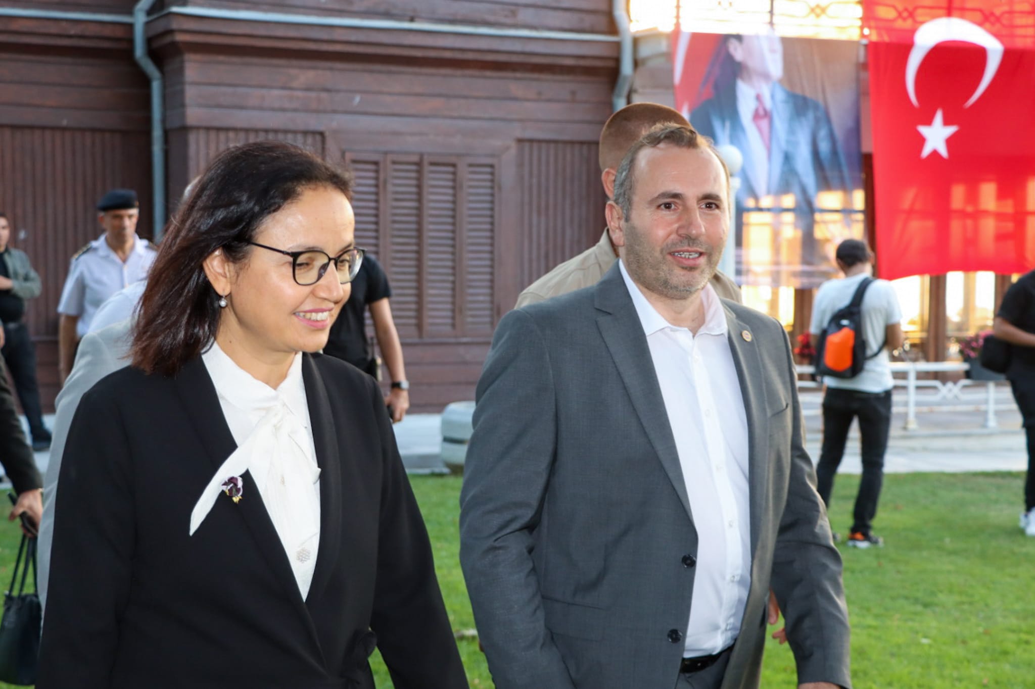 Yürüyen Köşk’te saygı duruşu ve İstiklal Marşı’nın okunmasıyla başlayan etkinliğe; Yalova Valisi Dr. Hülya Kaya, Yalova Belediye Başkanı Mustafa Tutuk, DP Genel Başkan Yardımcısı Barbaros Binicioğlu, siyasi partilerin il başkanları, STK temsilcileri, Yalova İl Protokolü, kamu kurumlarının il müdürleri ve vatandaşlar hazır bulundu.