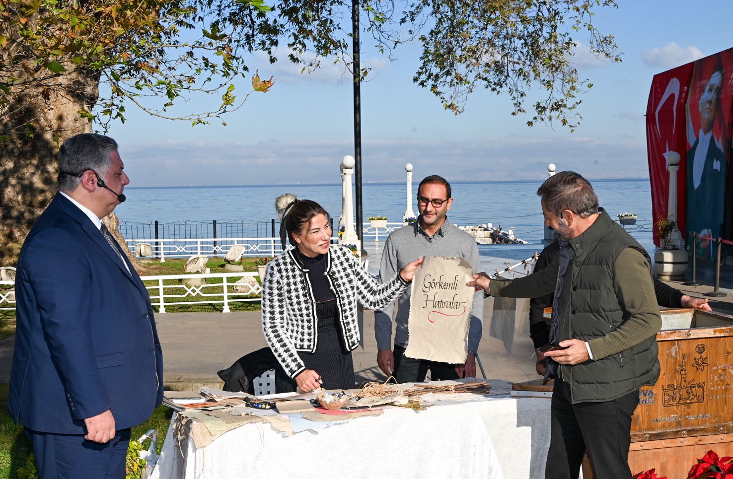 Yalova Belediyesi İbrahim Müteferrika Kağıt Müzesinin tanıtımının yapıldığı programda Başkan Gürel, Program Yapımcısı Serhan Asker’e geleneksel yöntemlerle kağıt yapım sürecini anlattı. Programın sonunda Başkan Gürel geleneksel olarak yapılmış olan kağıt üzerine programın adı olan “Görkemli Hatıralar” ve program yapımcısı “Serhan Asker’in” isminin yazılı olduğu bir tablo hediye ederek; “Böyle bir programı Atatürk Haftası’nda, Atatürk’ün Benim Kentim dediği şehrimizde ve Yürüyen Köşk’te yapmanızdan dolayı sizlere çok teşekkür ederim” dedi.
