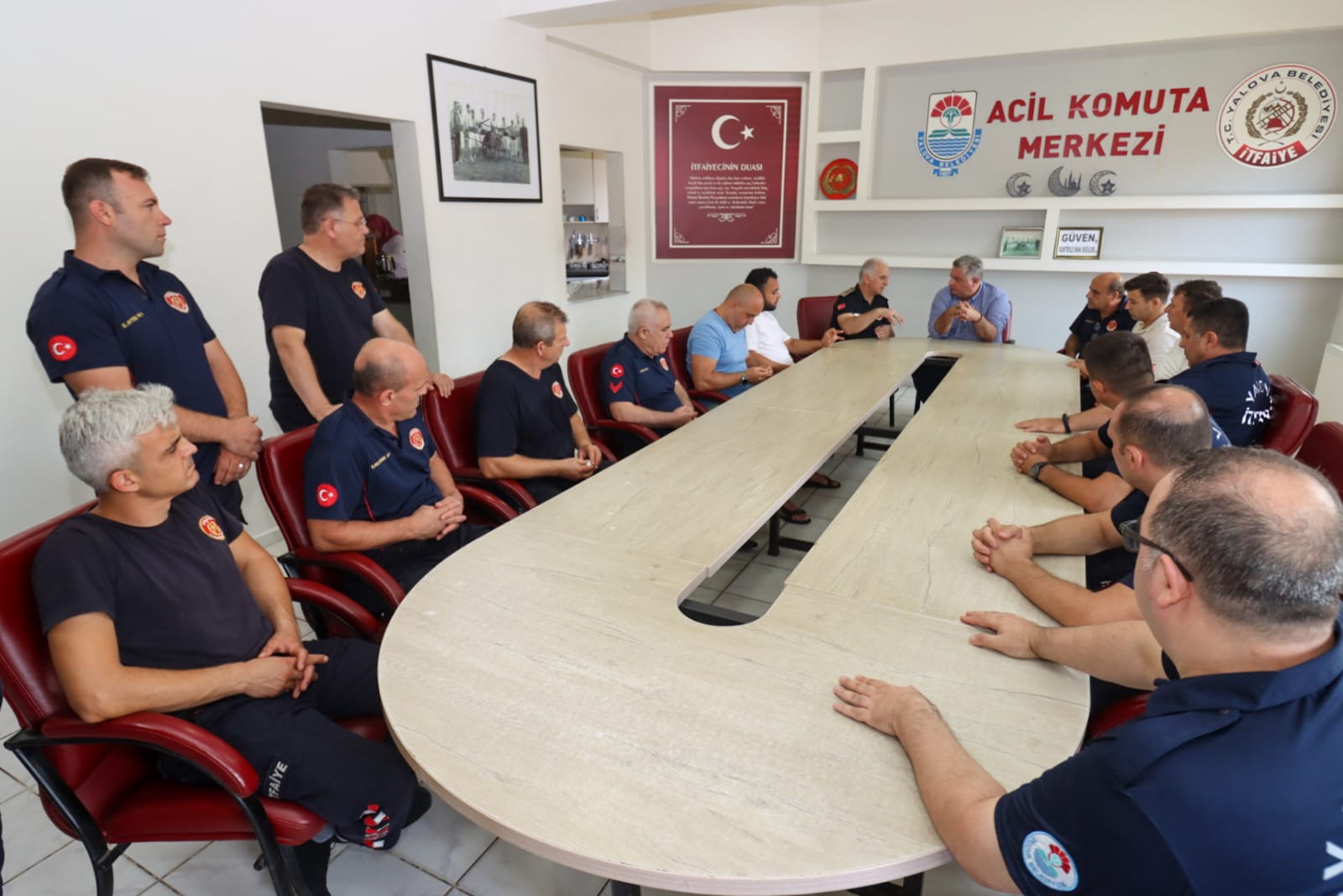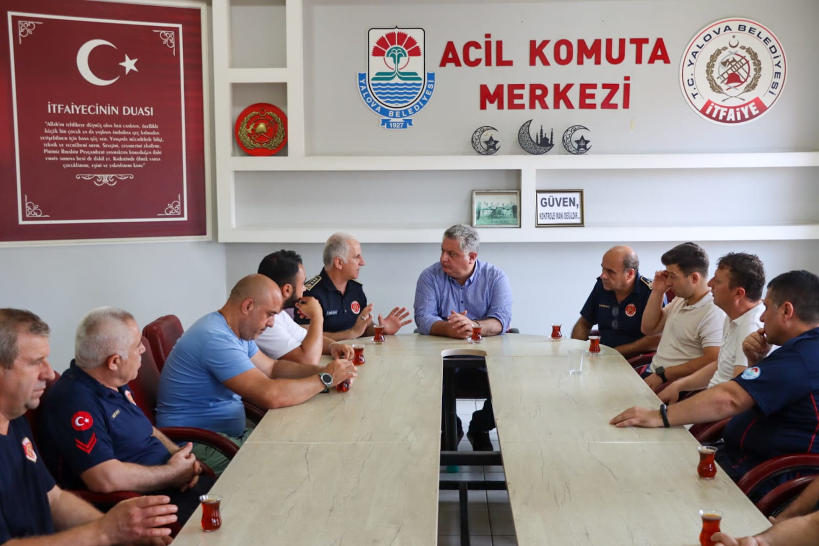 Yalova Belediye Başkanı Mehmet Gürel, Sakarya'nın Geyve ile Bursa’nın Kestel ve Harmancık ilçelerinde meydana gelen orman yangınlarına müdahale eden Yalova Belediyesi İtfaiye Müdürlüğü personeliyle bir araya geldi.
