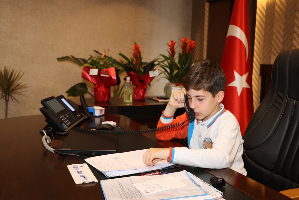 Okul Müdürü Adem Aykan, Sınıf Öğretmeni Ahmet Aykut ile birlikte Zeynep Sabiha Aykut, Tanem Köse, Yiğit Yasir Canbaz ve Tuna Sevim makam arabasıyla Yalova Belediyesine geldi. Özel kalem personeli ve ardından Yalova Belediye Başkanı Mehmet Gürel tarafından makamda karşılanan öğrenciler sırayla makam koltuğuna oturdu. Koltuğa sırayla oturan öğrenciler gerekli birimleri arayarak yapılması gerekenler hakkında müdürler ile görüştü.