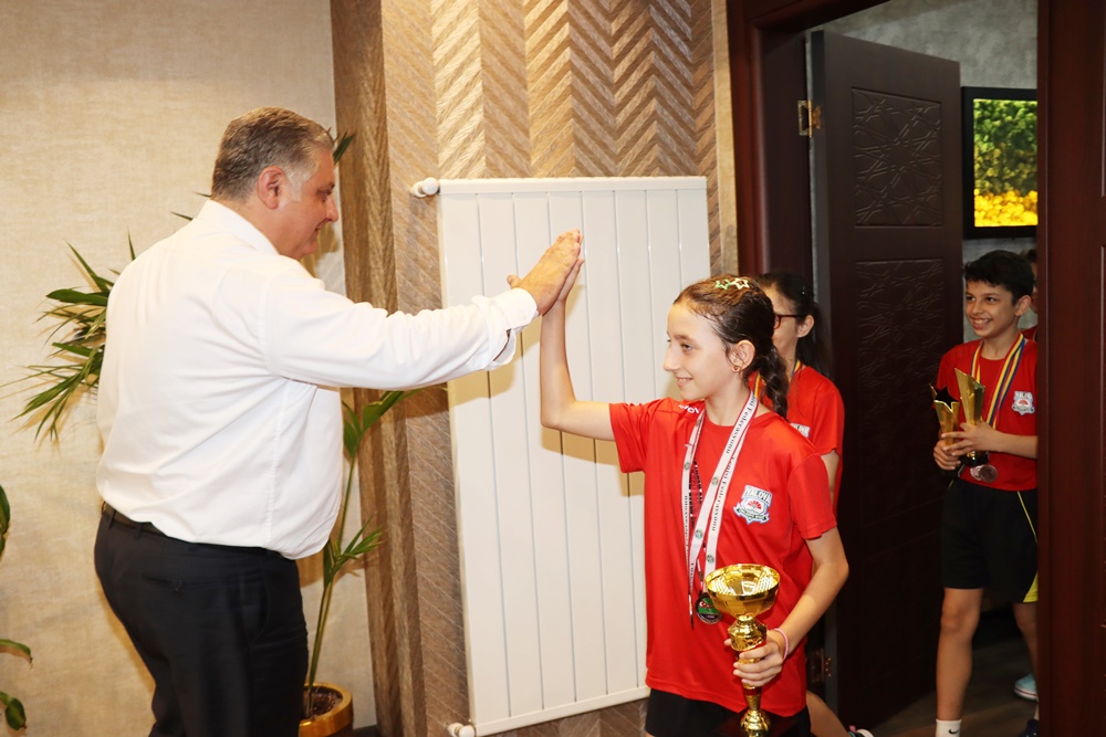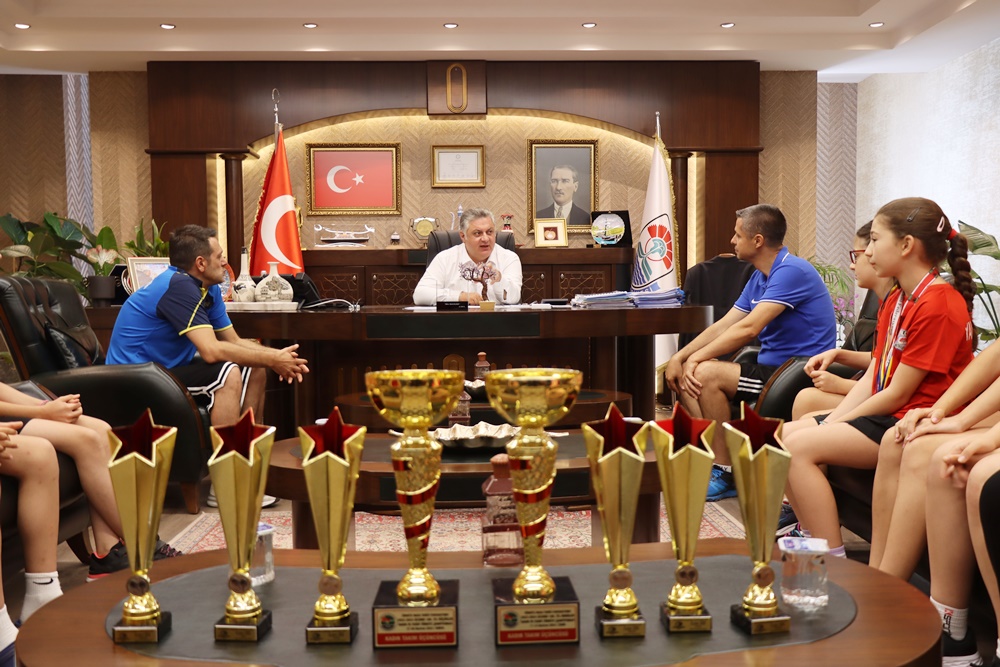 BAŞKAN GÜREL ŞAMPİYONLARI AĞIRLADI