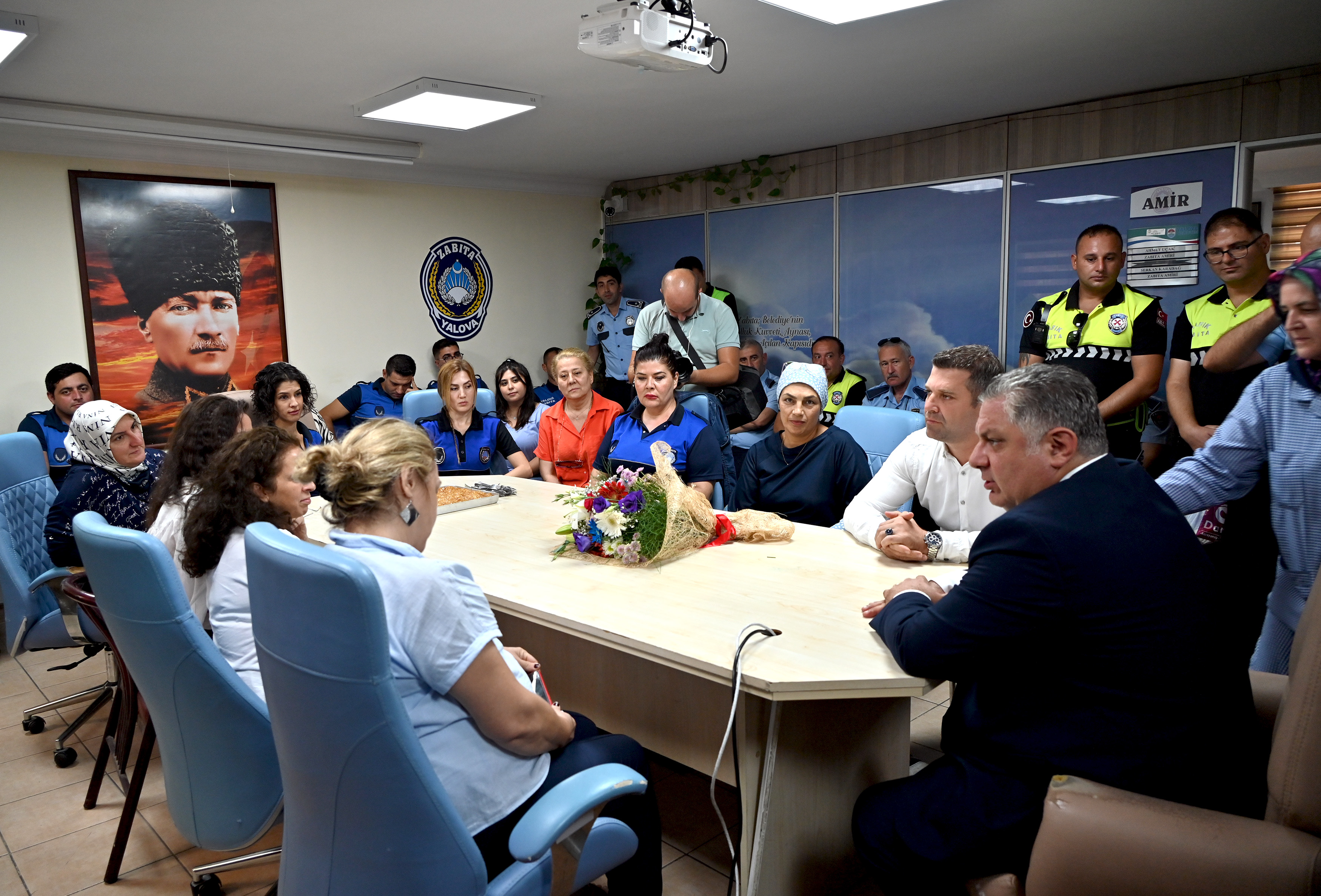 Yalova Belediye Başkanı Mehmet Gürel, Zabıta Haftası dolayısıyla Yalova Belediyesi Zabıta Müdürlüğü personeli ile bir araya geldi. Zabıta Müdürü İsmail Duran tarafından karşılanan Başkan Gürel, tüm personel ile tek tek tokalaşarak günlerini kutladı.