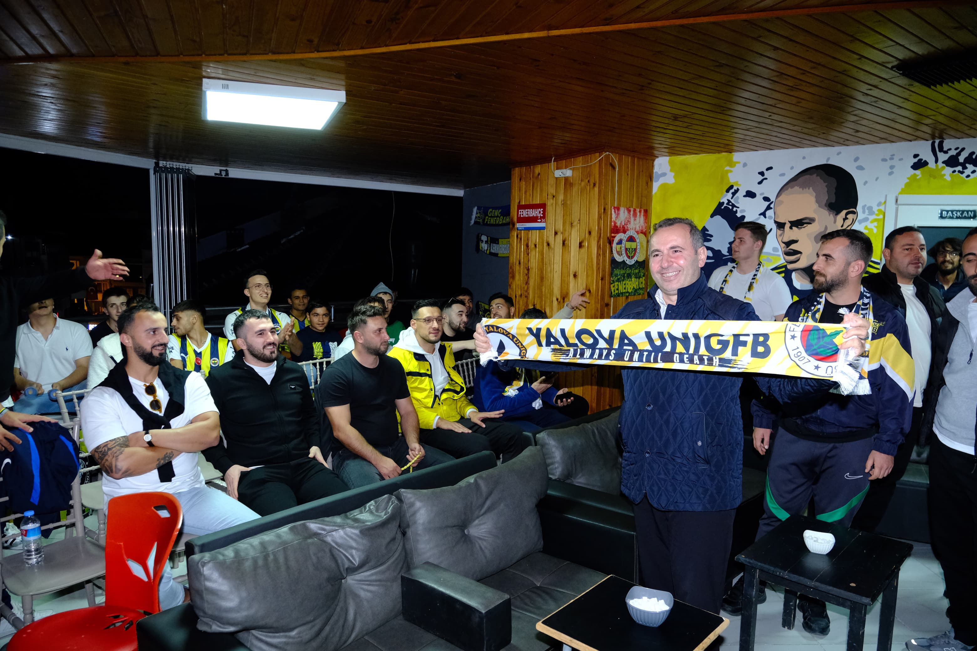 Yalova Belediye Başkanı Mustafa Tutuk, Yalova Genç Fenerbahçeliler Derneği (GFB) üyeleriyle bir araya gelerek Adanademirspor- Fenerbahçe müsabakasını izledi.