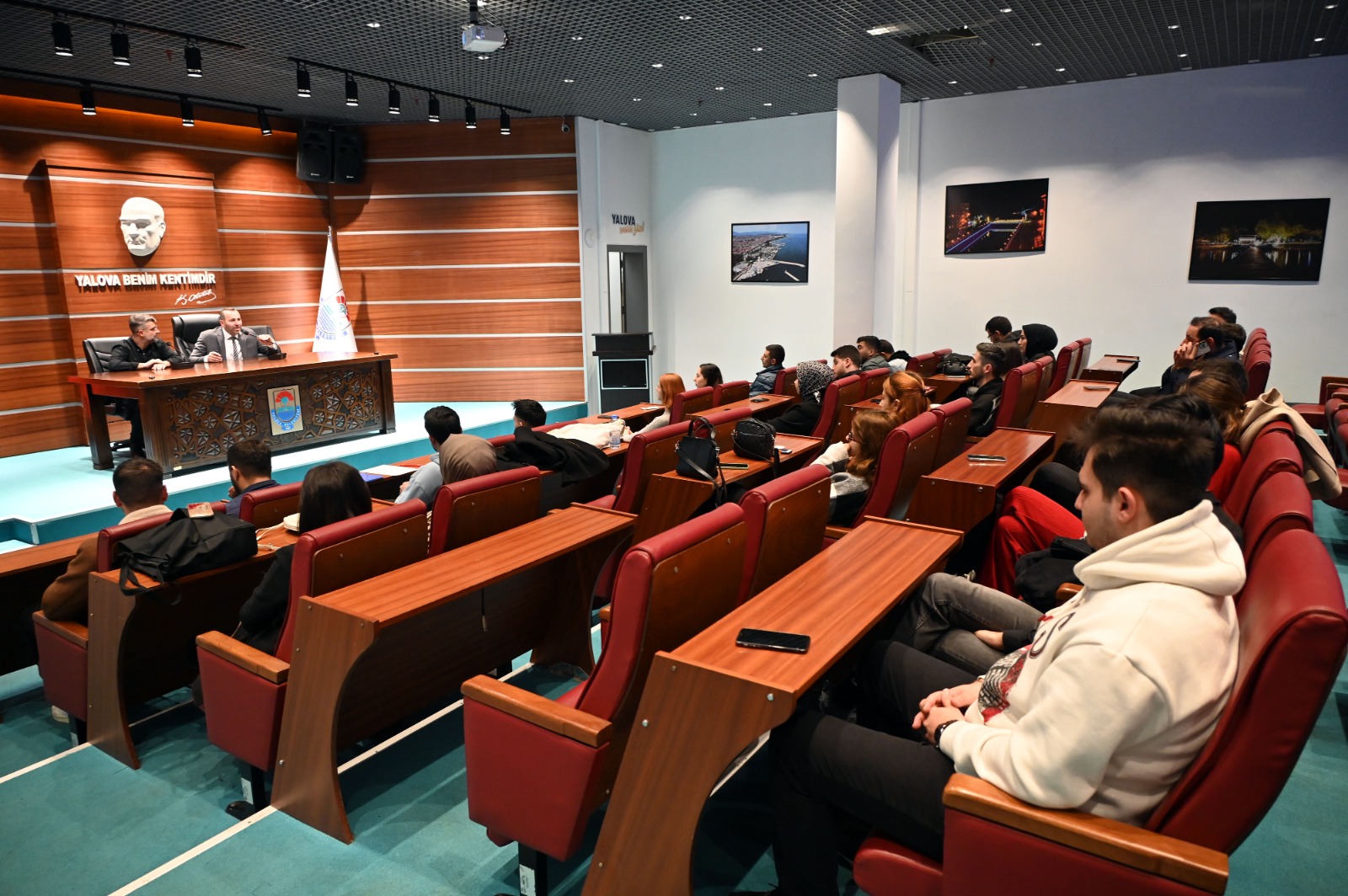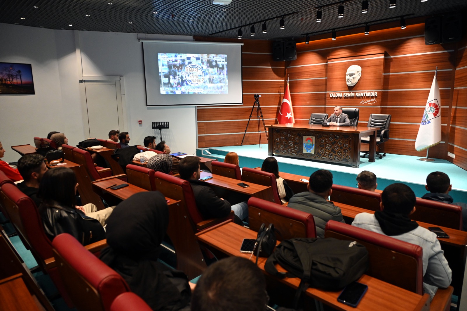 Yalova Belediye Başkanı Mustafa Tutuk, Yalova Üniversitesi öğrencilerinden gelen talep üzerine ders verdi. Kendisi de Kamu Yönetimi Bölümü mezunu olan Başkan Tutuk, Siyaset Bilimi ve Kamu Yönetimi Bölümü öğrencilerinin ‘kent sorunları’ dersini işledi.