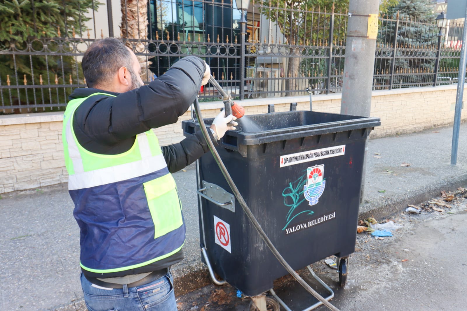 Müdürlük ekipleri, temizlik işleri müdürlüğü ekipleri ile koordineli şekilde çalışarak yıkanıp dezenfekte edilen çöp konteynerlerinin ve mazgalların ilaçlama çalışmasını tamamladı.