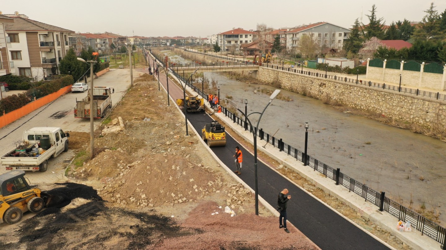 Adnan Menderes Mahallesi Sanat Sokak’tan başlayan çalışmalar, dere güzergahı üzerinden TOKİ konutlarına kadar devam ediyor. Toplam 2 bin 600 metre uzunluğundaki alanda binder asfalt çalışmaları sürüyor. Önümüzdeki günlerde aşınma asfaltının tamamlanmasıyla birlikte boyama işlemleri başlayacak. Ardından peyzaj çalışmaları ile şehrin estetiğine uygun bitkiler dikilecek.