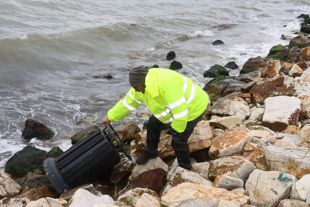Doğu Sahil Bandında meydana gelen olayın akabinde Yalova Belediyesi ekipleri tarafından yerlerinden sökülen çöp kutuları ve banklar atıldıkları yerden alınarak yerlerine konuldu.