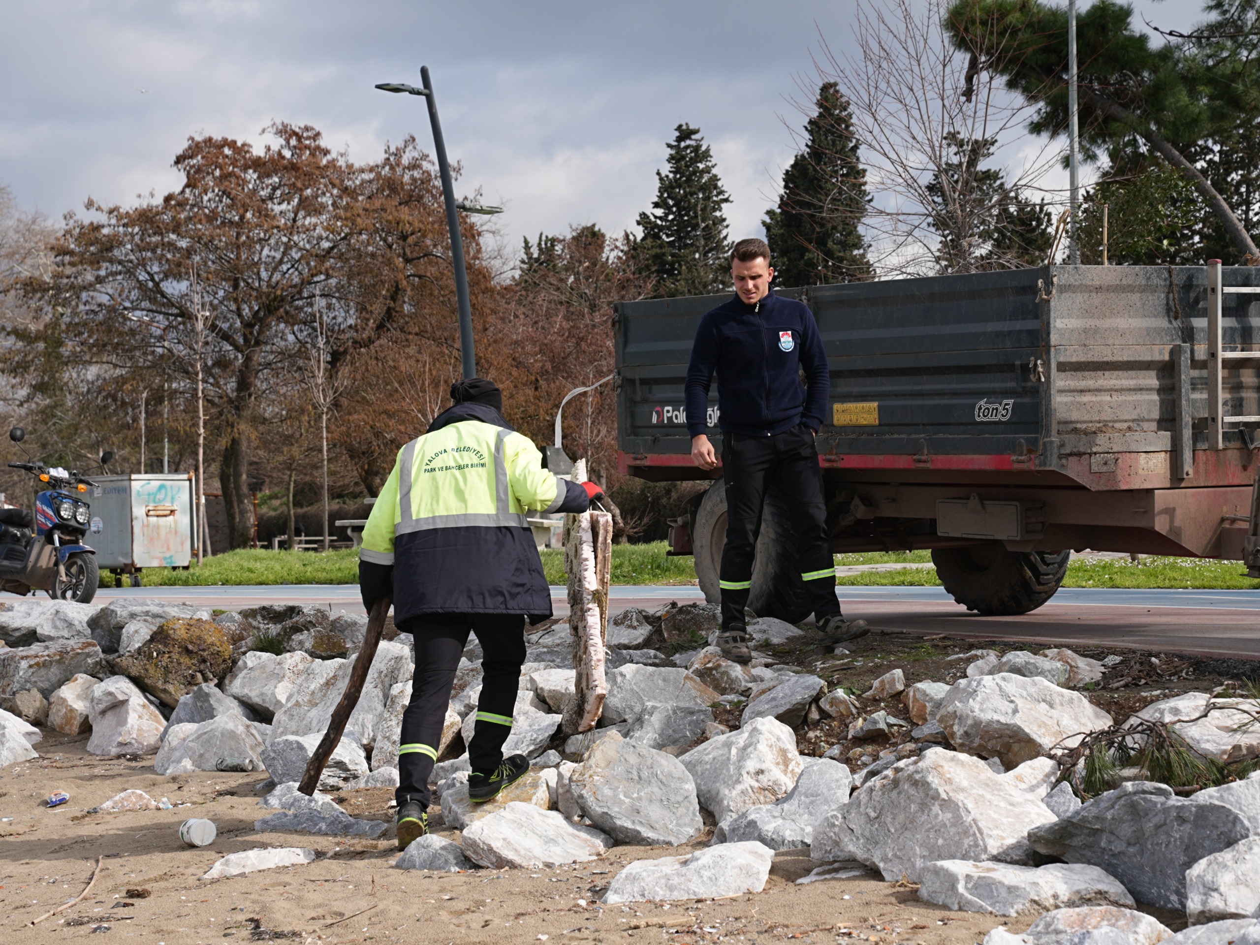 Yalova Belediyesi, Doğu Sahil Bandı kumsalında başlattığı temizlik çalışmalarını aralıksız sürdürüyor. Ekipler, sahil şeridinde biriken atıklar ile denizden kıyıya vuran çöpleri tek tek toplayarak kumsalı daha sağlıklı, temiz ve güvenli bir görünüme kavuşturuyor.