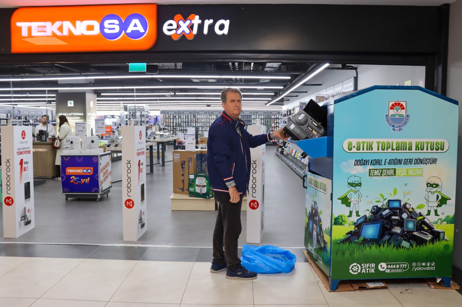 Yalova Belediyesi’nin, 14 Ekim Dünya E-Atık Günü kapsamında Teknosa iş birliğiyle düzenlediği “Doğayı Koru, E-Atığını Geri Dönüştür” etkinliği büyük ilgi gördü. Vatandaşlar, kullanılmayan elektronik eşyalarını geri dönüşüme kazandırmak için Yalova Vega AVM Teknosa Mağazası’na getirdi.