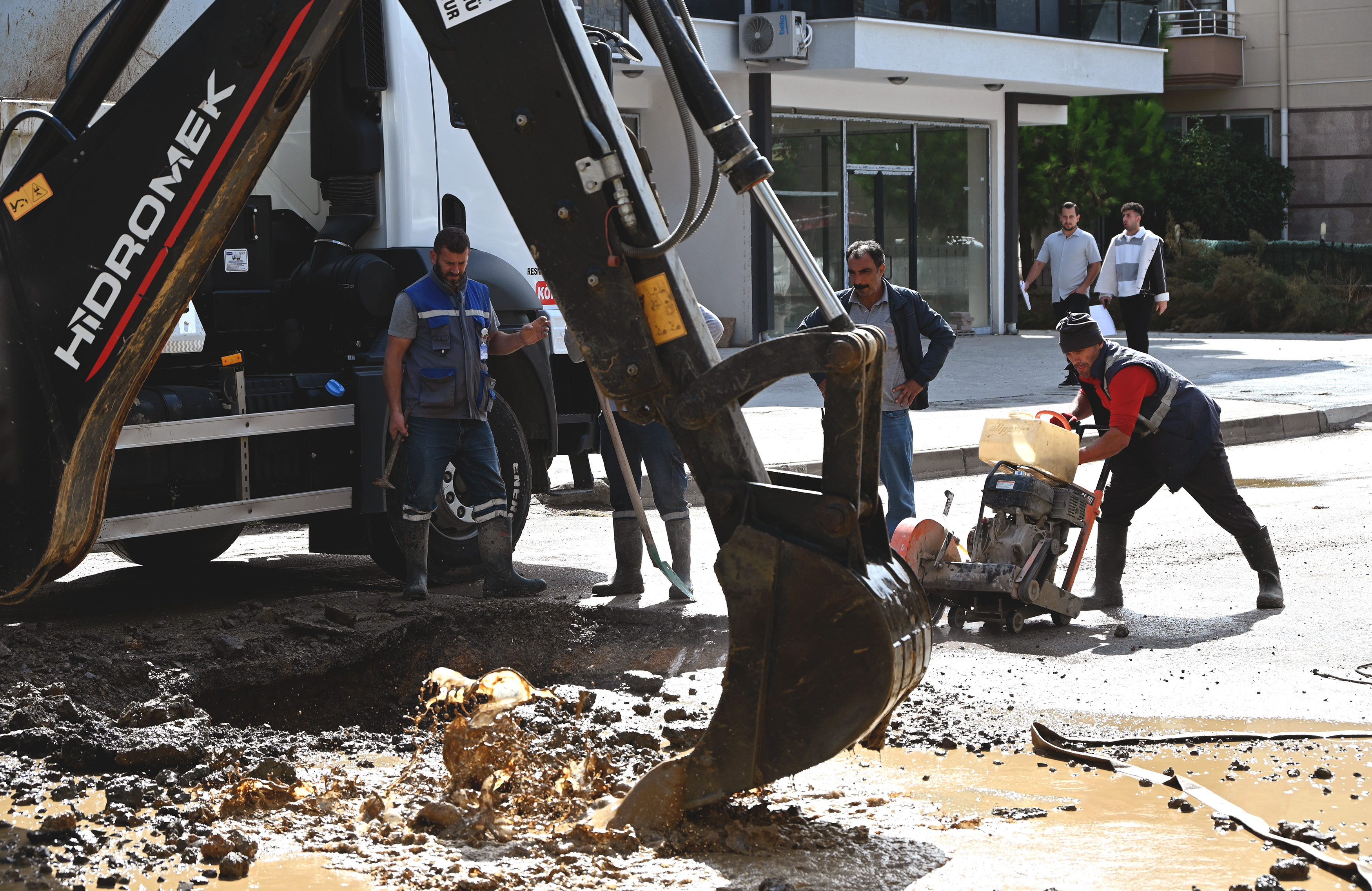 Yalova Belediyesi Su ve Kanalizasyon İşleri Müdürlüğü ekipleri, Adnan Menderes Mahallesi Rahmi Üstel Caddesi üzerinde bulunan ana içme suyu hattında meydana gelen arızaya müdahalede bulunuyor. Patlakların onarılması için büyük çaba sarf eden ekipler, bölgedeki su hizmetlerinin kesintisiz sağlanabilmesi için çalışma yapıyor.