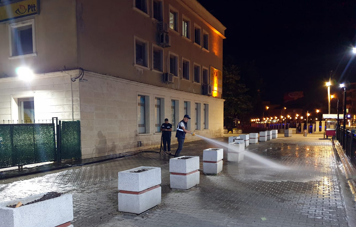 Temizlik ekipleri geçtiğimiz akşam, çalışmalarına Yalova’nın en işlek noktalarından biri olan Gazipaşa Caddesi'nden başladı. Ardından PTT bölgesi, Cumhuriyet Meydanı, Barış Manço Amfi Tiyatro bölgesi, minibüs garajı, oyun parkları ve çevresi başta olmak üzere kentin farklı noktalarında detaylı zemin yıkama işlemleri gerçekleştirdi.