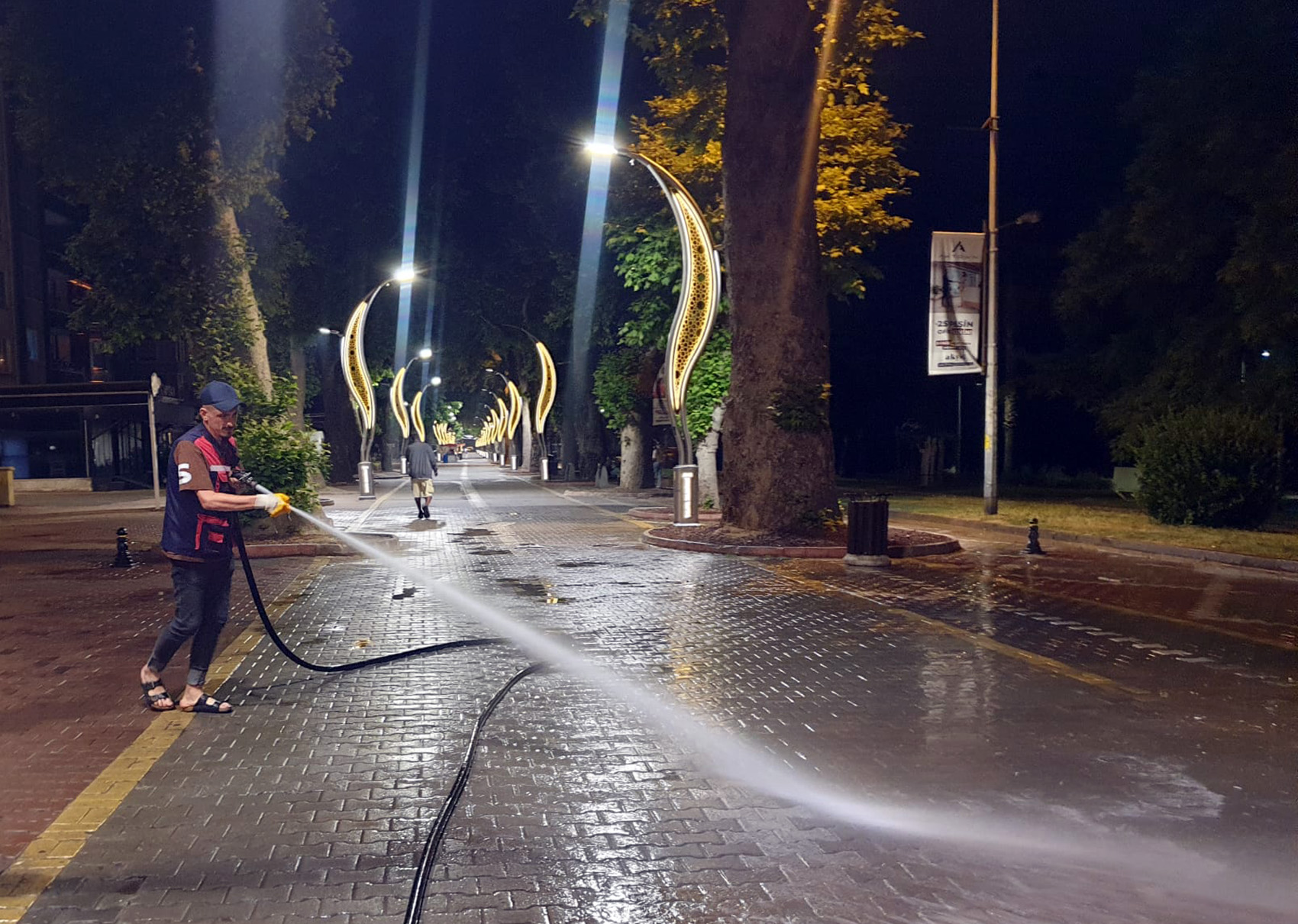 “Kentimizin ana arterleri başta olmak üzere toplu kullanım alanlarında temizlik çalışmalarımıza gece saatlerinde ağırlık veriyoruz. Hem trafiği hem de yaya yoğunluğunu etkilememek adına gece boyunca devam eden çalışmalarımızı planlı bir şekilde sürdüreceğiz.”