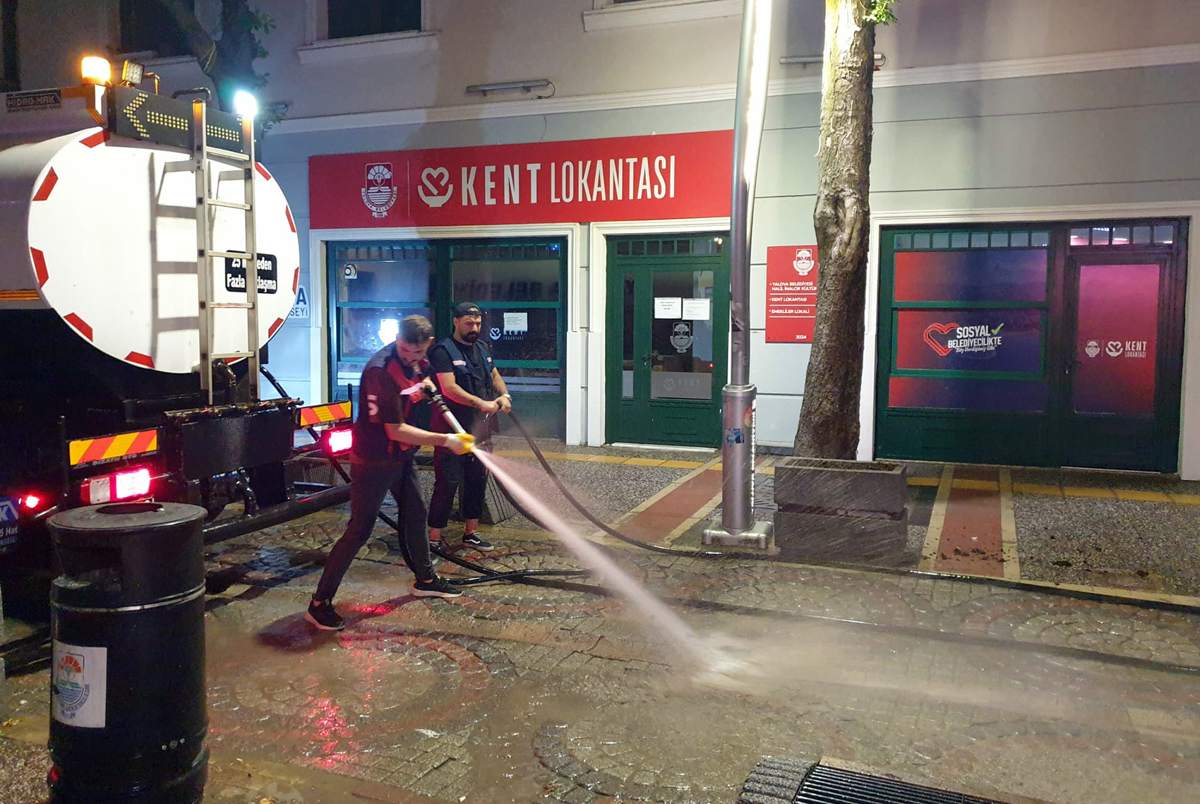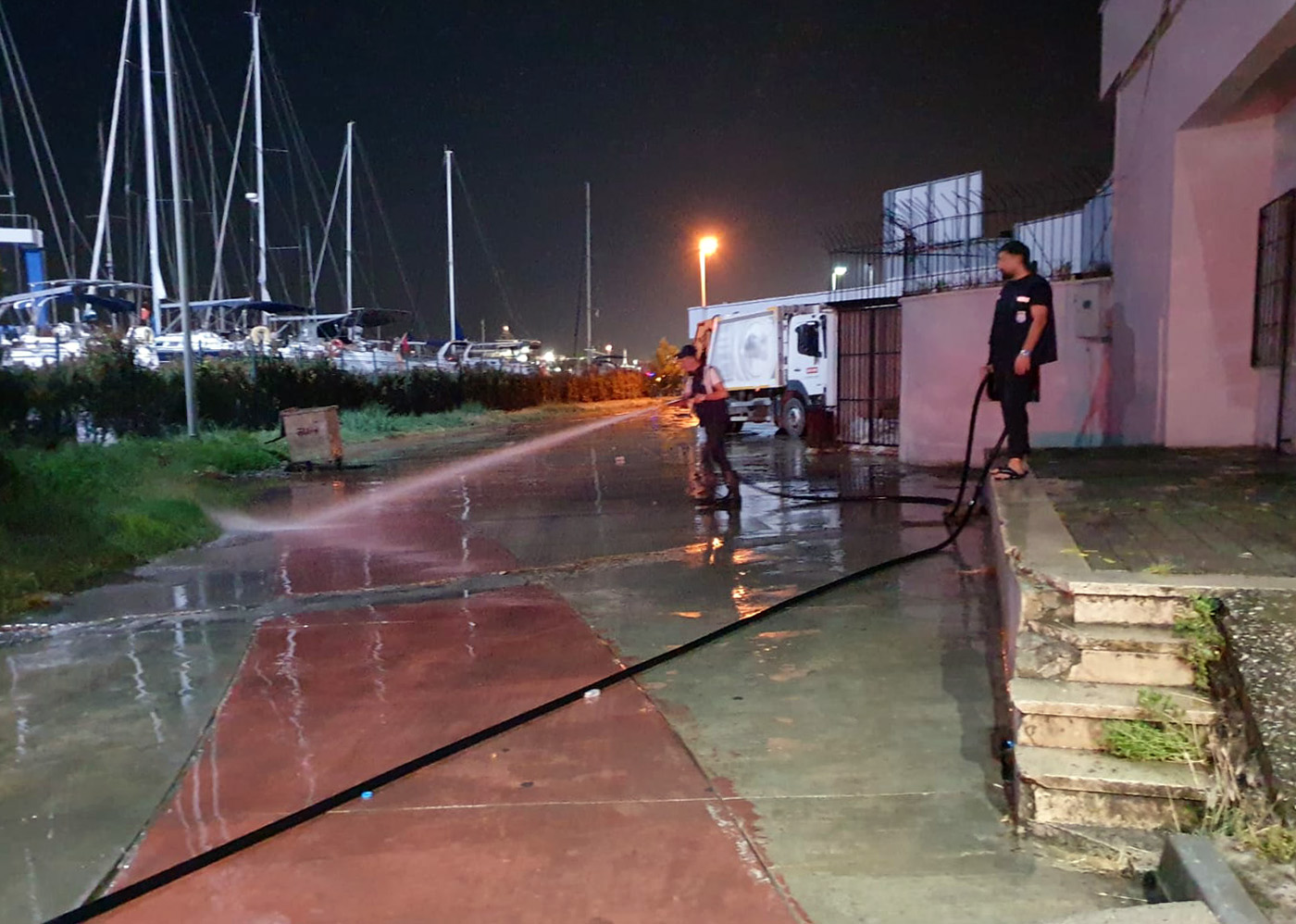 EKİPLERİMİZDEN GECE BOYU KAPSAMLI YIKAMA VE TEMİZLİK ÇALIŞMASI