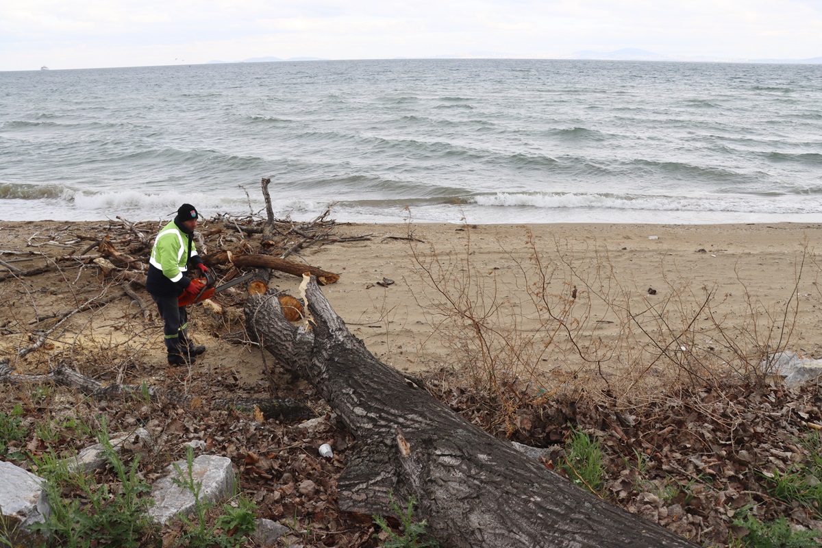 Hafta sonu fırtına nedeniyle Doğu Sahil Bandında çürüyen ağaçların devrilmesi sonucu Yalova Belediyesi Park Bahçeler Birimi, Doğu Sahil Bandında tehlike arz eden ağaçların kesim ve budamasını gerçekleştiriyor. Fırtınada zarar gören ağaçların yerine ise iki katı fidan dikimi yapılacak.