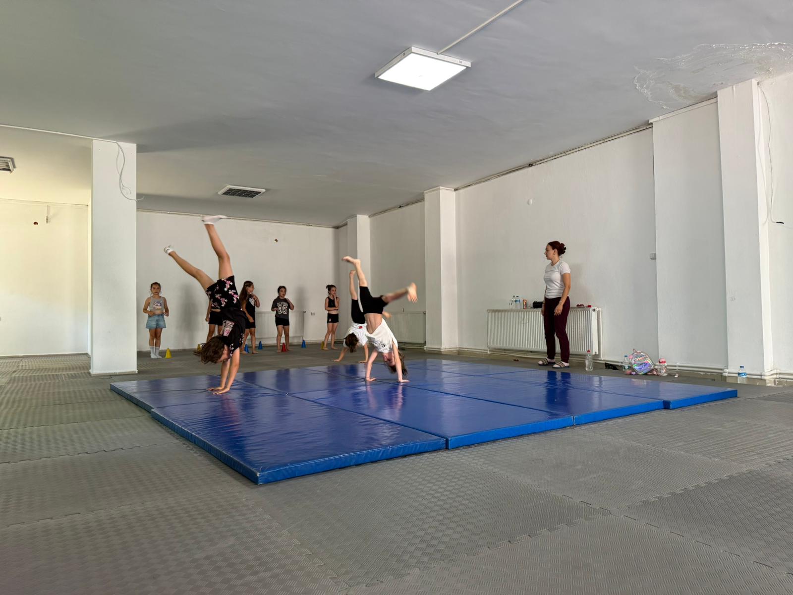 Yaz tatilini verimli geçirmek isteyen öğrenciler, uzman eğitmenler eşliğinde sporla iç içe bir yaz yaşıyor. Jimnastik kurslarına katılan minikler; esneklik, denge ve koordinasyon gibi temel becerileri kazanırken aynı zamanda sosyal yönden de gelişiyor. Renkli geçen antrenmanlar sayesinde çocuklar, enerjilerini sağlıklı bir şekilde atıyor ve sporu bir yaşam biçimi haline getiriyor.