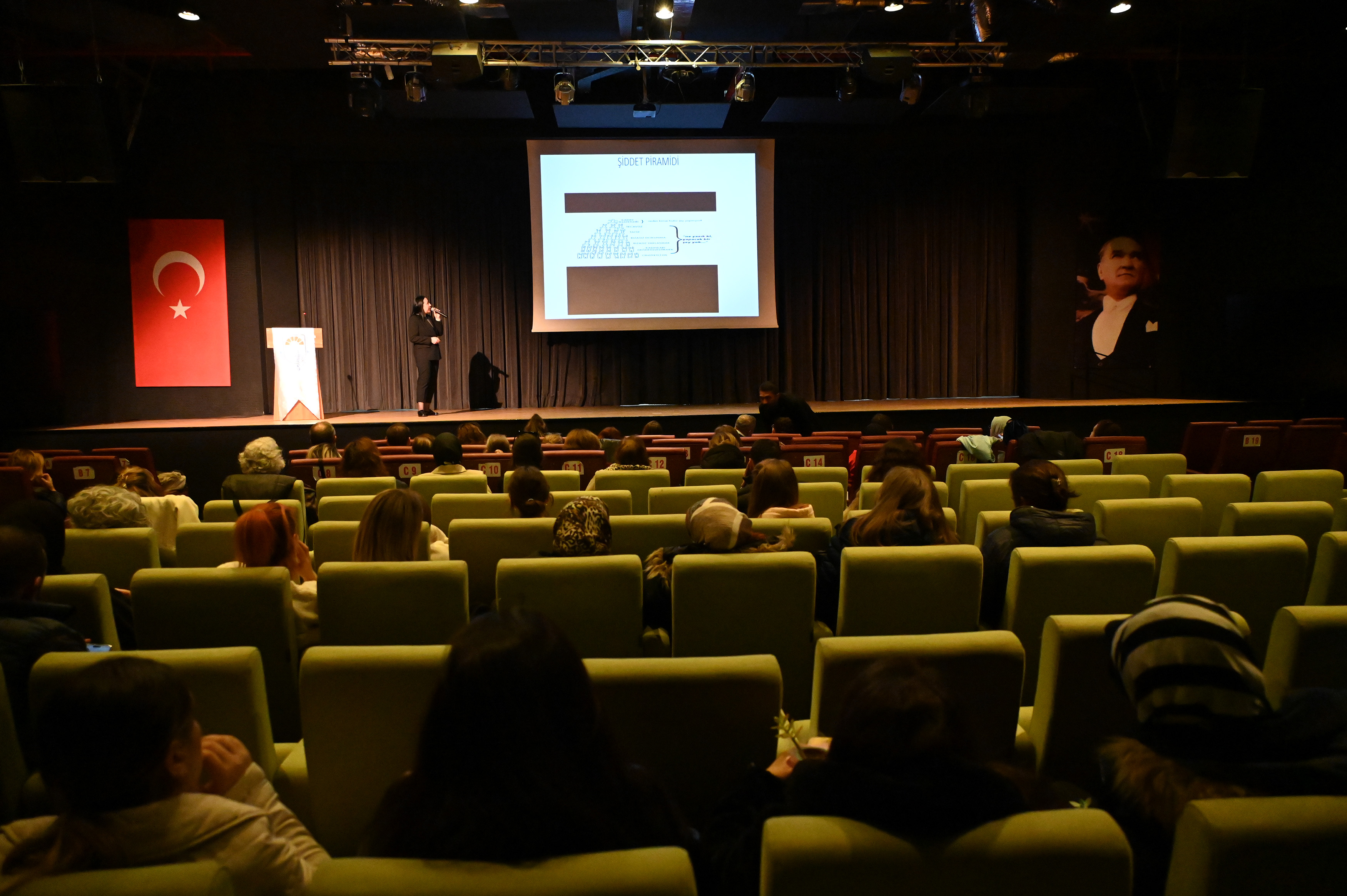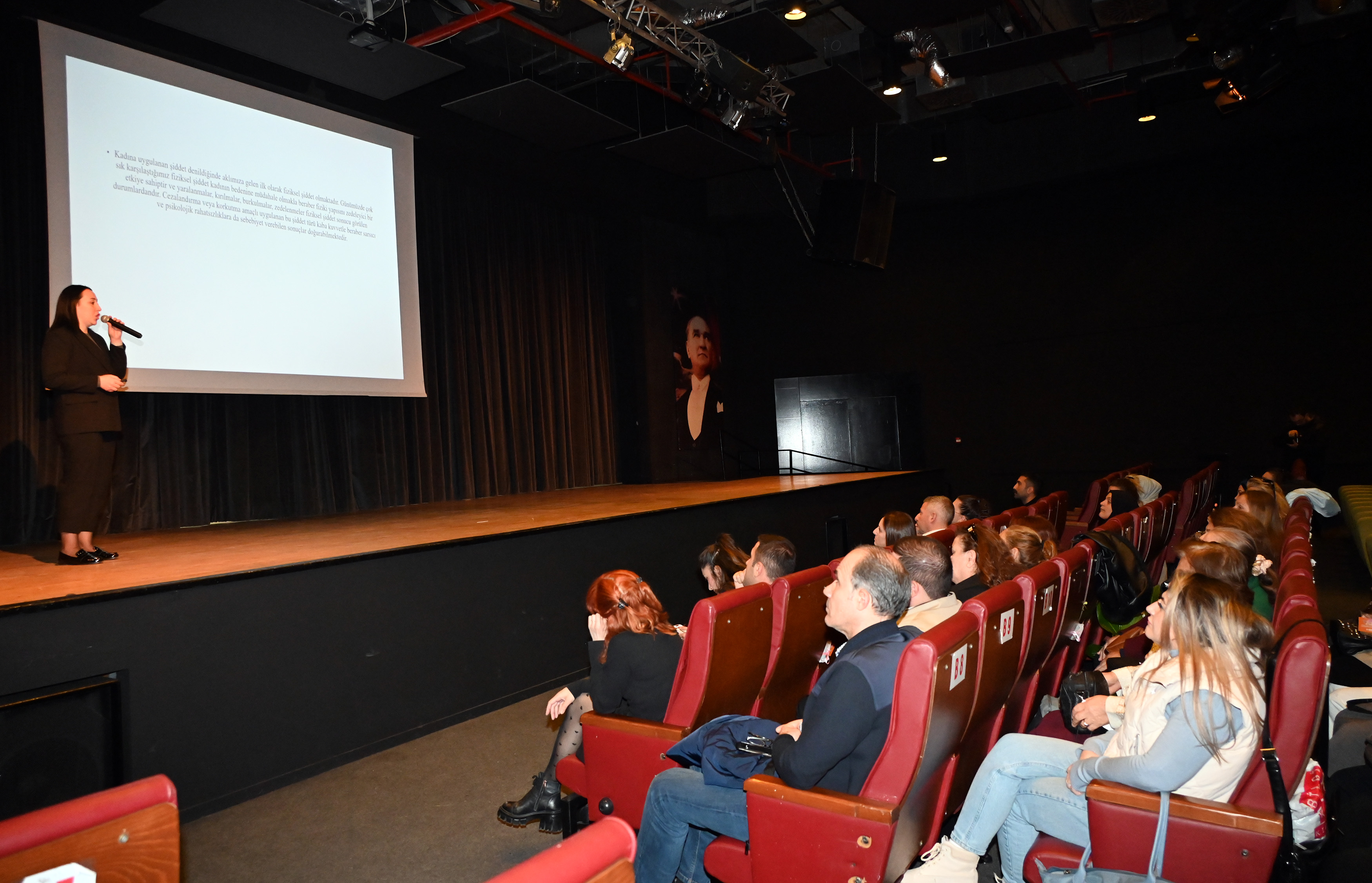 Raif Dinçkök Kültür Merkezi Özgecan Aslan Salonu’nda gerçekleştirilen etkinlik, Yalova Belediyesi Tiyatro Sanatçısı Funda Yıldız’ın rol aldığı “Kadına Şiddet” temalı film gösterimi ile başladı. Ardından, Yalova Belediyesi Kadın ve Aile Biriminden Psikolog Nazmiye Hilal Özbek Taş, kadına yönelik şiddetin psikolojik etkileri ve mücadele yolları hakkında bilgilendirici bir sunum yaptı. Yalova İl Emniyet Müdürlüğü Asayiş Şube Müdürlüğü Aile İçi ve Kadına Karşı Şiddetle Mücadele Büro Amirliği’nden Başkomiser Mert Kızıleniş, yasal süreçler ve şiddet mağdurlarına yönelik emniyet birimlerinin sağladığı destekler hakkında katılımcıları bilgilendirdi.