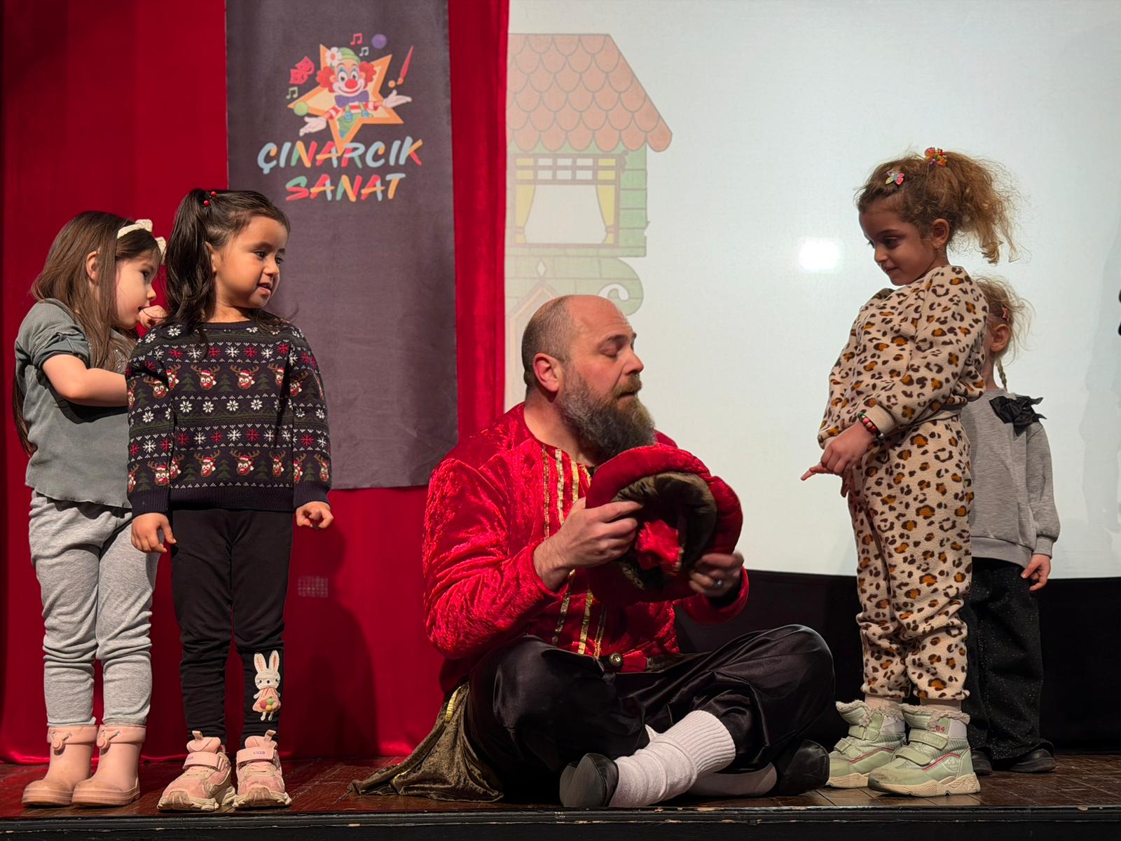 Geleneksel gölge oyununun en sevilen karakterleri Karagöz ile Hacivat’ın eğlenceli atışmaları, neşeli diyalogları ve kahkaha dolu anları sahnede hayat buldu. Renkli tasvirler ve ustalıkla yansıtılan gölgeler eşliğinde sahnelenen oyun, çocuklara hem keyifli hem de öğretici bir deneyim sundu. Minikler, kültürümüzün önemli miraslarından biri olan gölge oyununu yakından tanıma fırsatı buldu.