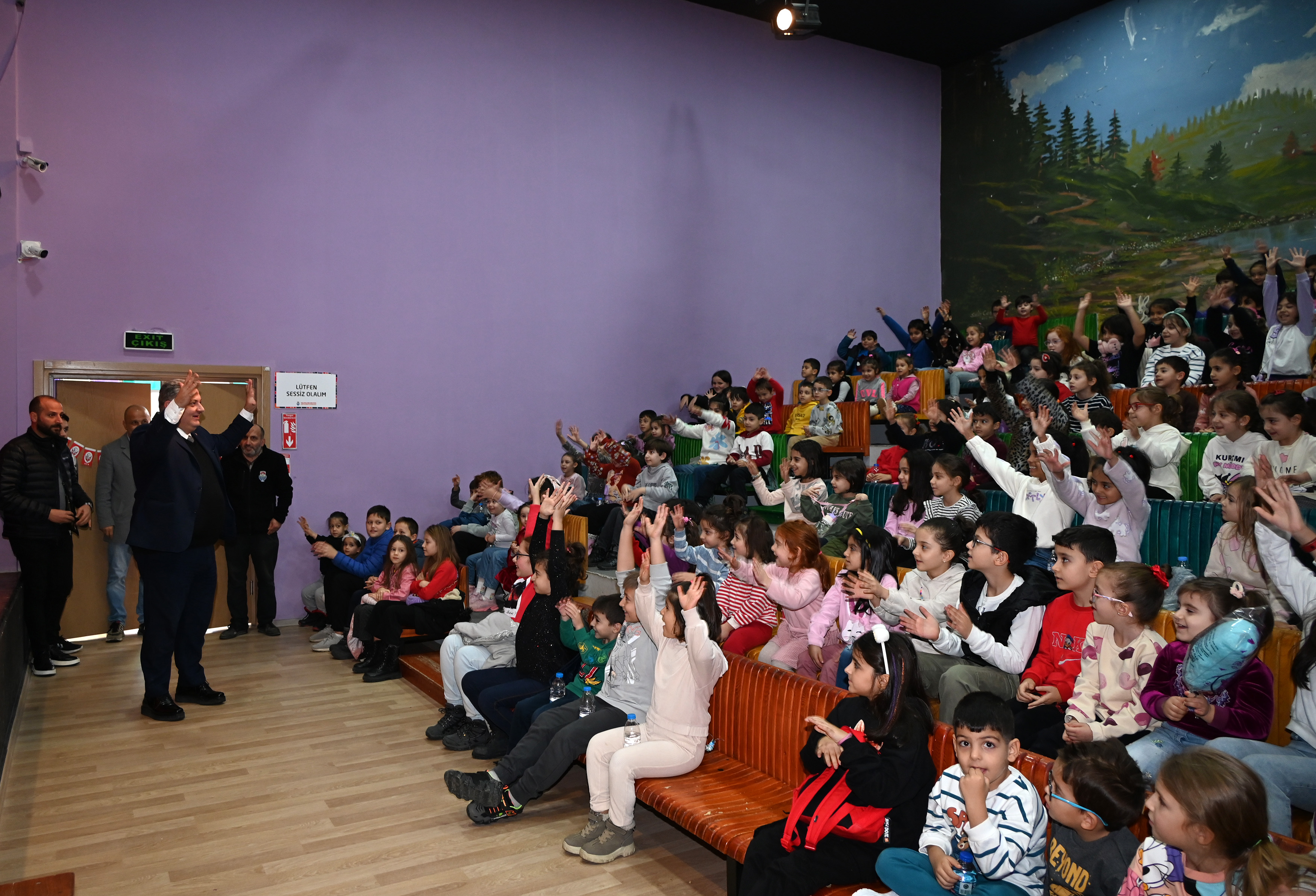 Yalova Belediye Başkanı Mehmet Gürel de ‘Kırmızı Başlıklı Kız’ müzikal oyununa katılarak minik izleyicilerle eğlenceli dakikalar geçirdi. Oyunu ilgiyle seyreden çocuklara selam veren Başkan Gürel, bu esnada salonda çocuklarını bekleyen ailelerle de bir araya gelerek onların talep ve önerilerini dinledi.