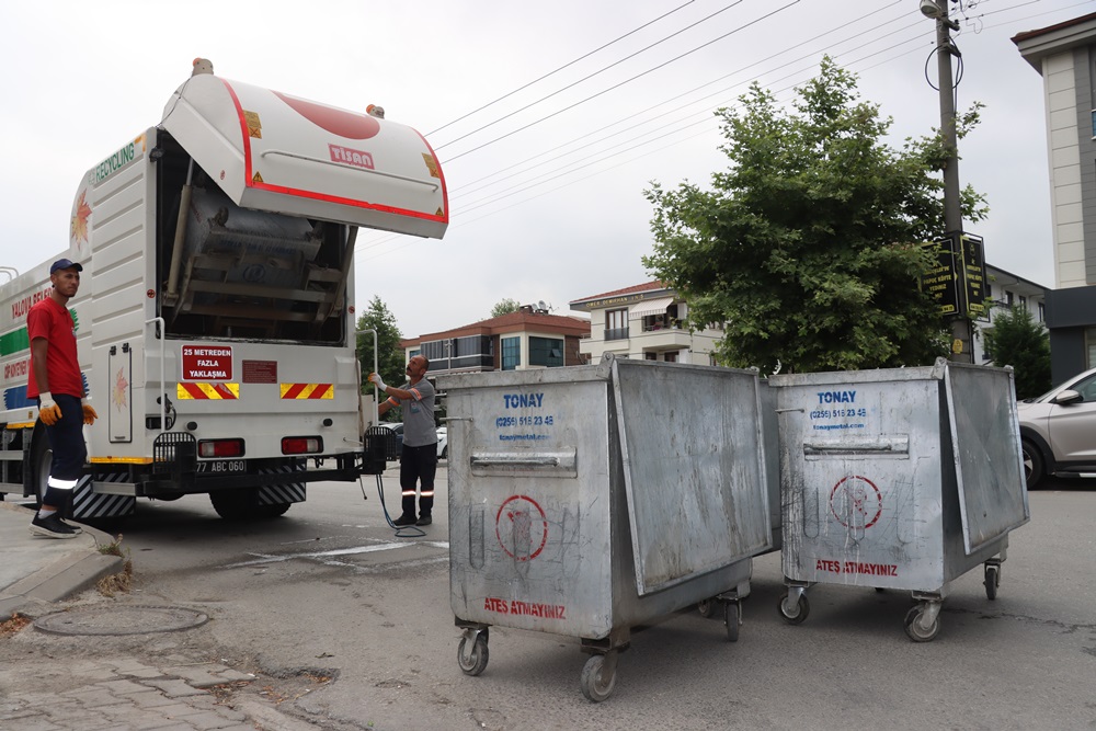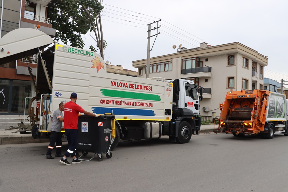 Mahalle, cadde ve sokaklarda temizlik çalışmaların rutin olarak devam eden ekipler, çöp konteynerlerini deterjan ve dezenfektanlı tazyikli sıcak suyla yıkamasını yapıyor. Deterjan ve dezenfektan sıkılan çöp konteynerleri yıkama aracının içinde yaklaşık 5 dakika tazyikli sıcak suyla yıkanarak temiz bir duruma getiriliyor. Konteynerlerin temizliğinin ardından yıkama yapılan bölgenin de temizliği Yalova Belediyesi tarafından gerçekleştiriliyor.