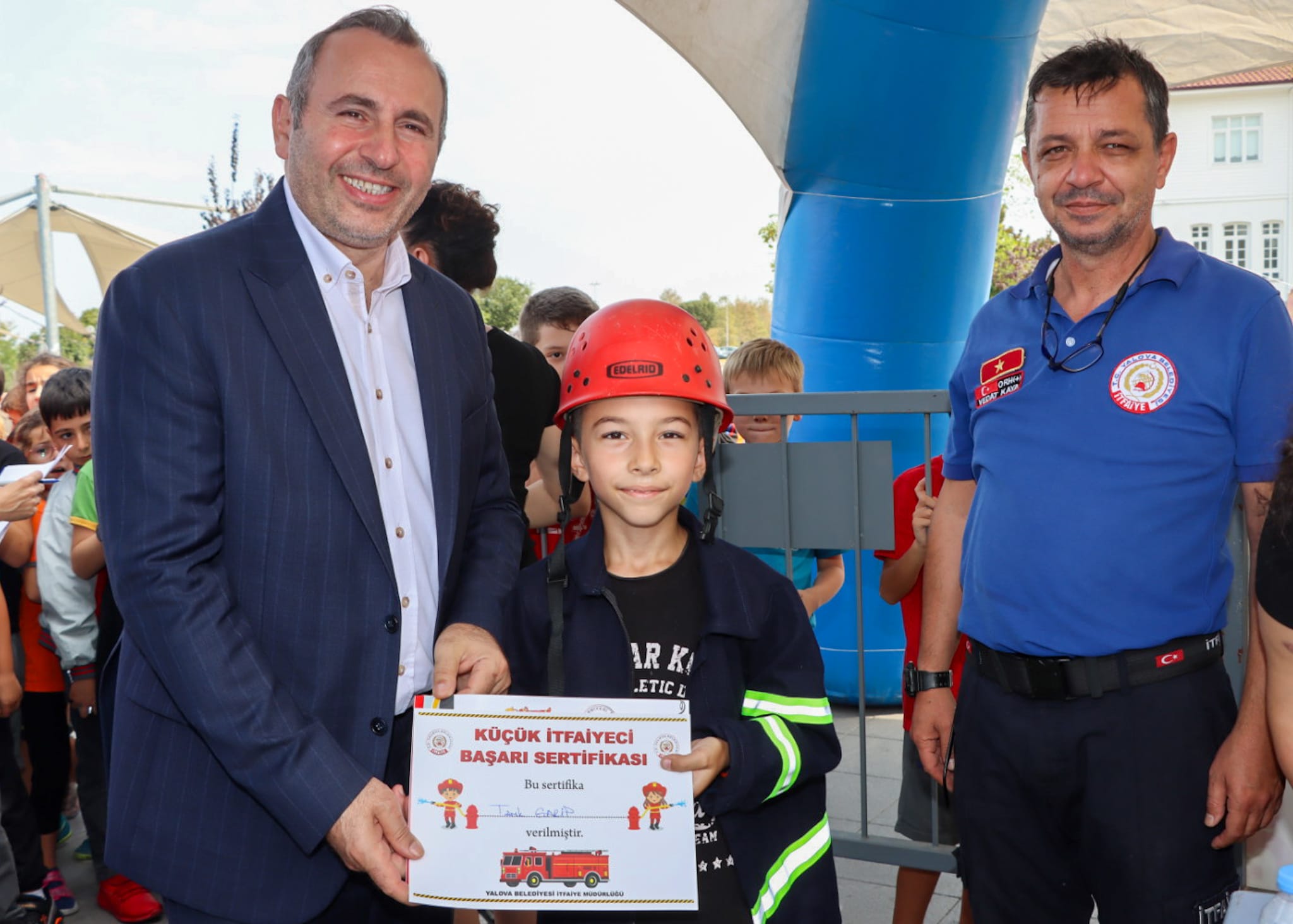 Gün boyu süren programda, çocukların eğlencesine ortak olan Yalova Belediye Başkanı Mustafa Tutuk, eğitimlere katılan miniklerle hatıra fotoğrafı çektirdi. Etkinliğe katılan çocuklar, “Küçük İtfaiyeci” başarı sertifikasını ve boyama kitabını Başkan Mustafa Tutuk’un elinden aldı.