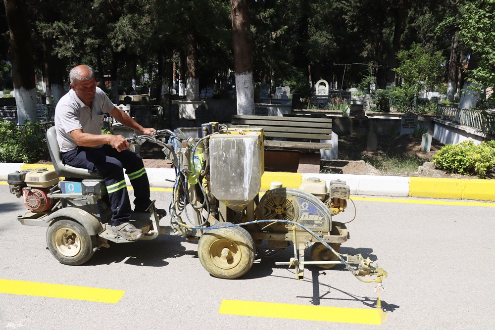 Yalova Belediyesi Mezarlıklar Müdürlüğü, Temizlik İşleri Müdürlüğü ve Ulaşım Hizmetleri Müdürlüğü’nün ortaklaşa yürüttüğü çalışmalarda mezarlık üzerinde, patika yollarda ve yol kenarlarındaki yabani otlar temizleniyor. Ayrıca yıkama işlemleriyle birlikte yol çizgileri ve kaldırım kenarlarında boyama çalışması yapılıyor.