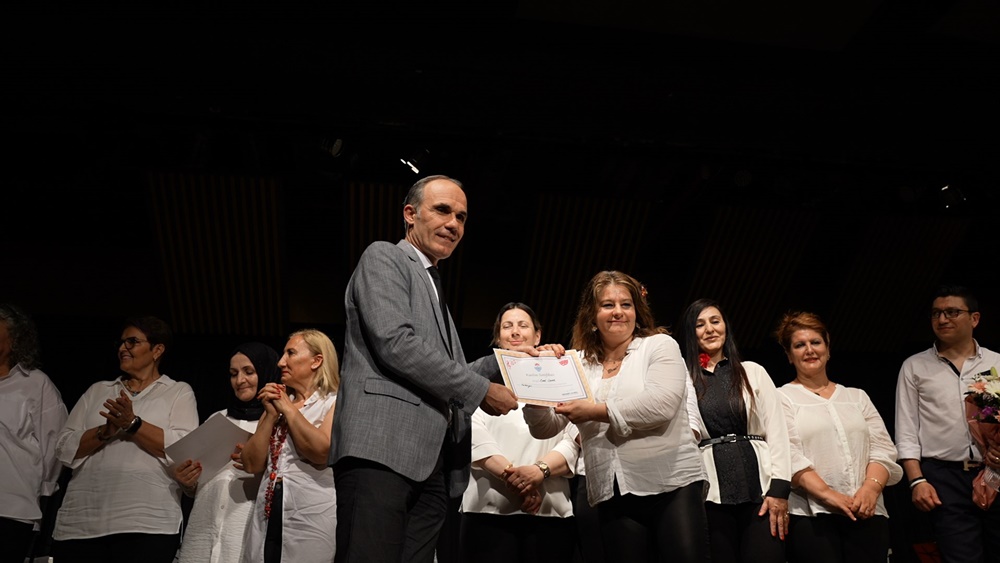 Geçtiğimiz Kasım ayı içerisinde başlayan 66 kursiyerin yer aldığı kurslardan öğrenciler Uzman Eğitmen ve Şef Tansu Can yönetiminde eğitimlerini tamamladı. Çocuk Gitar ve Bağlama, Kadın Gitar ve Bağlama ile Kadın Perküsyon kurslarından mezun olan öğrenciler hünerlerini Raif Dinçkök Kültür Merkezi (RDKM) Özgecan Aslan Salonu’nda sergiledi.
