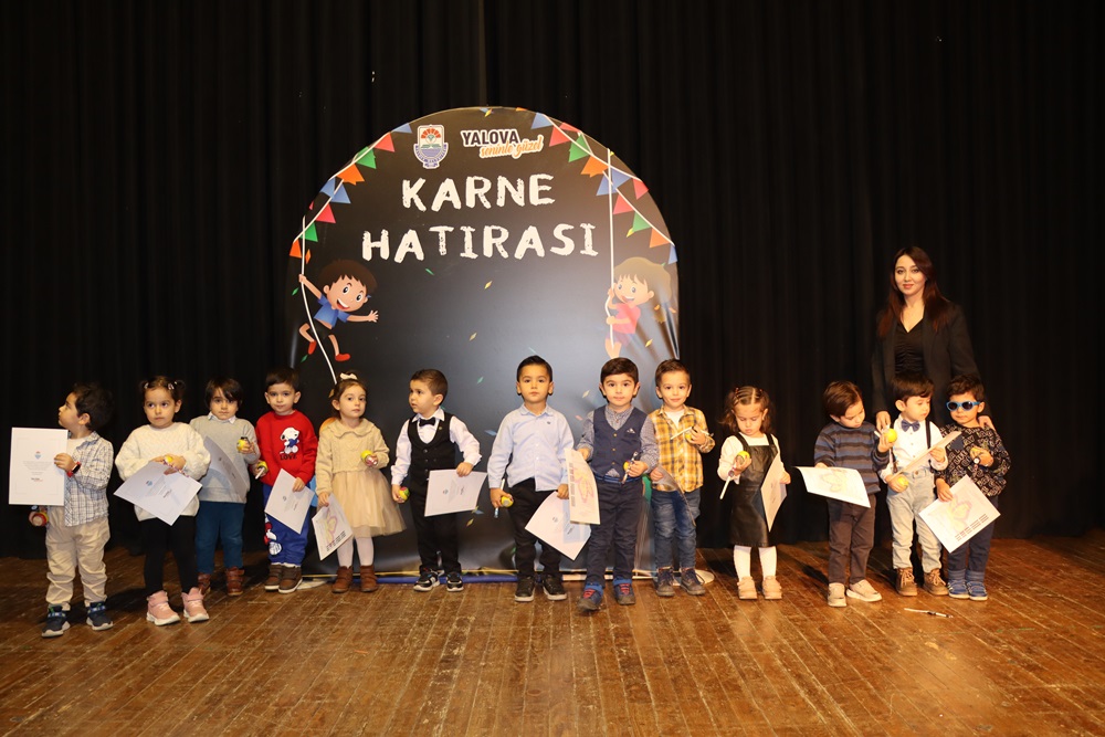 Birbirinden renkli kıyafetleri ile sertifika törenine katılan çocuklara ve ailelerine Yalova Belediye Başkanı Mustafa Tutuk’un selamları iletildi. Karnelerini alan öğrencilere ayrıca Yalova Belediyesi tarafından hediye takdim edildi.