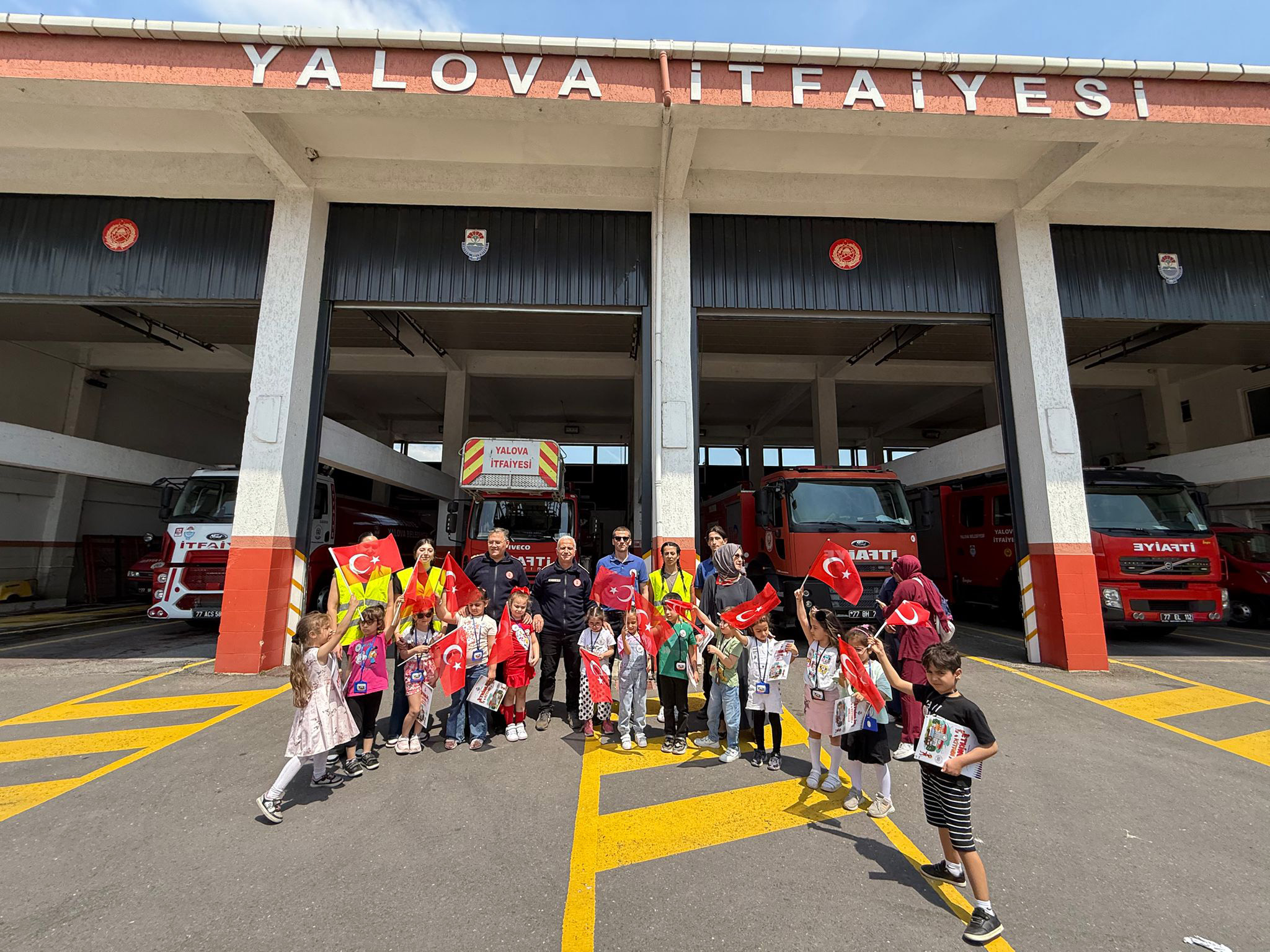 Yalova Öğretmen Yusuf Ziya Anaokulu öğrencileri, Yalova Belediyesi İtfaiye Müdürlüğü’nü ziyaret ederek hem eğlendi hem de öğrendi.