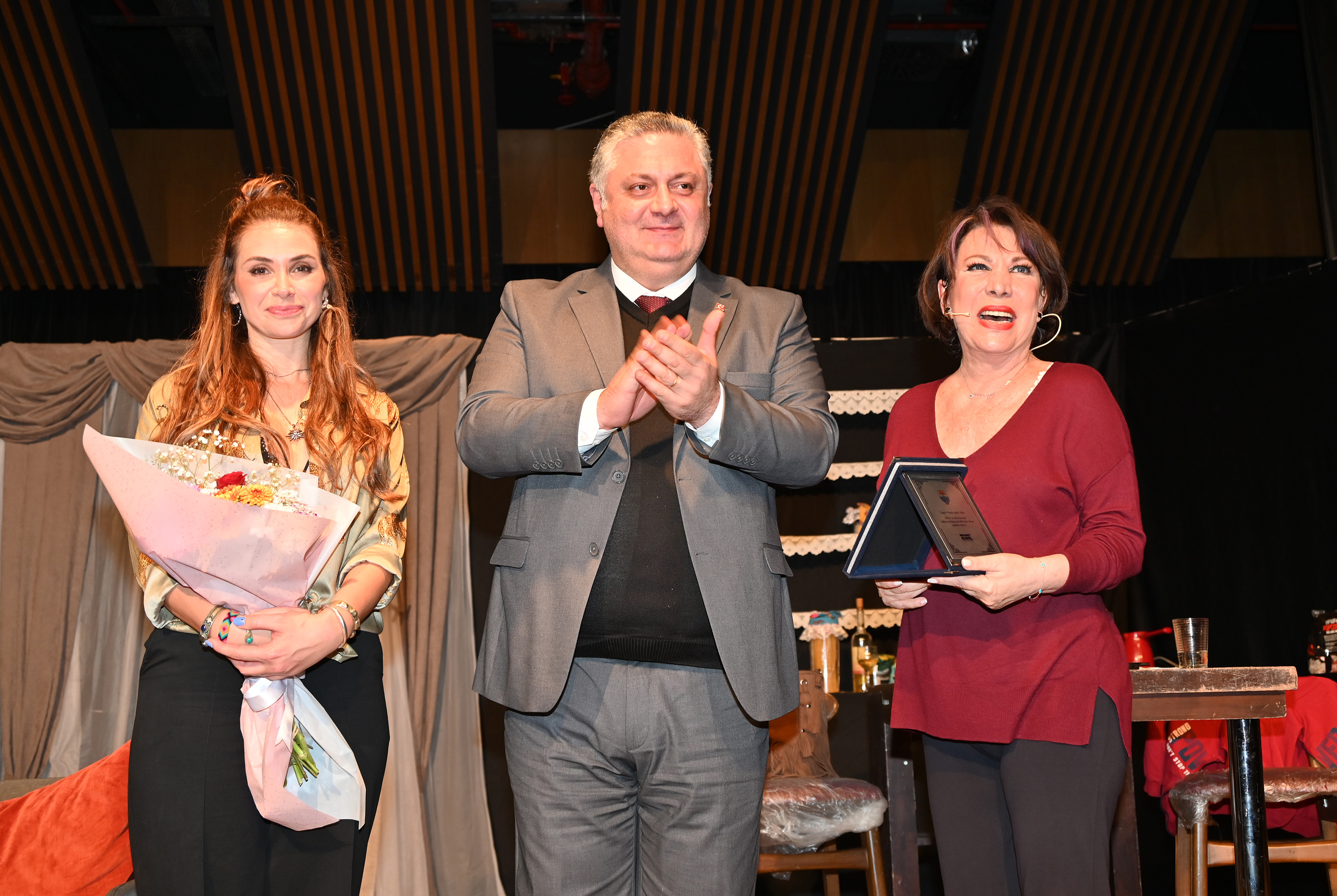 Geceye Yalova Belediye Başkanı Mehmet Gürel de katıldı. Oya Başar ve Begüm Birgören’in muhteşem sahne performansının ardından sahneye çıkan Başkan Gürel, tiyatronun sanat dünyasındaki yerinin önemine değinerek, “Sanatın ve sanatçılarımızın her zaman yanında olacak, onları desteklemeye devam edeceğiz” dedi.