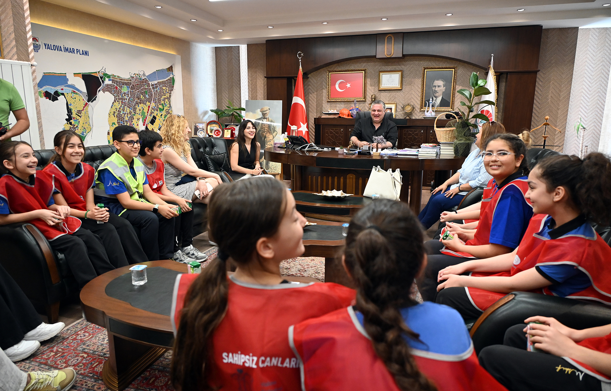 Yalova’da çocukların sosyal sorumluluk bilinciyle büyümesini hedefleyen “Görmezden Gelme” Projesi kapsamında anlamlı bir etkinlik gerçekleştirildi. Mehmet Akif Ersoy Ortaokulu ve Yalova Belediyesi Veterinerlik İşleri Müdürlüğü iş birliğiyle yürütülen proje çerçevesinde, 5. sınıf öğrencileri Yalova Belediye Başkanı Mehmet Gürel’i ziyaret etti.