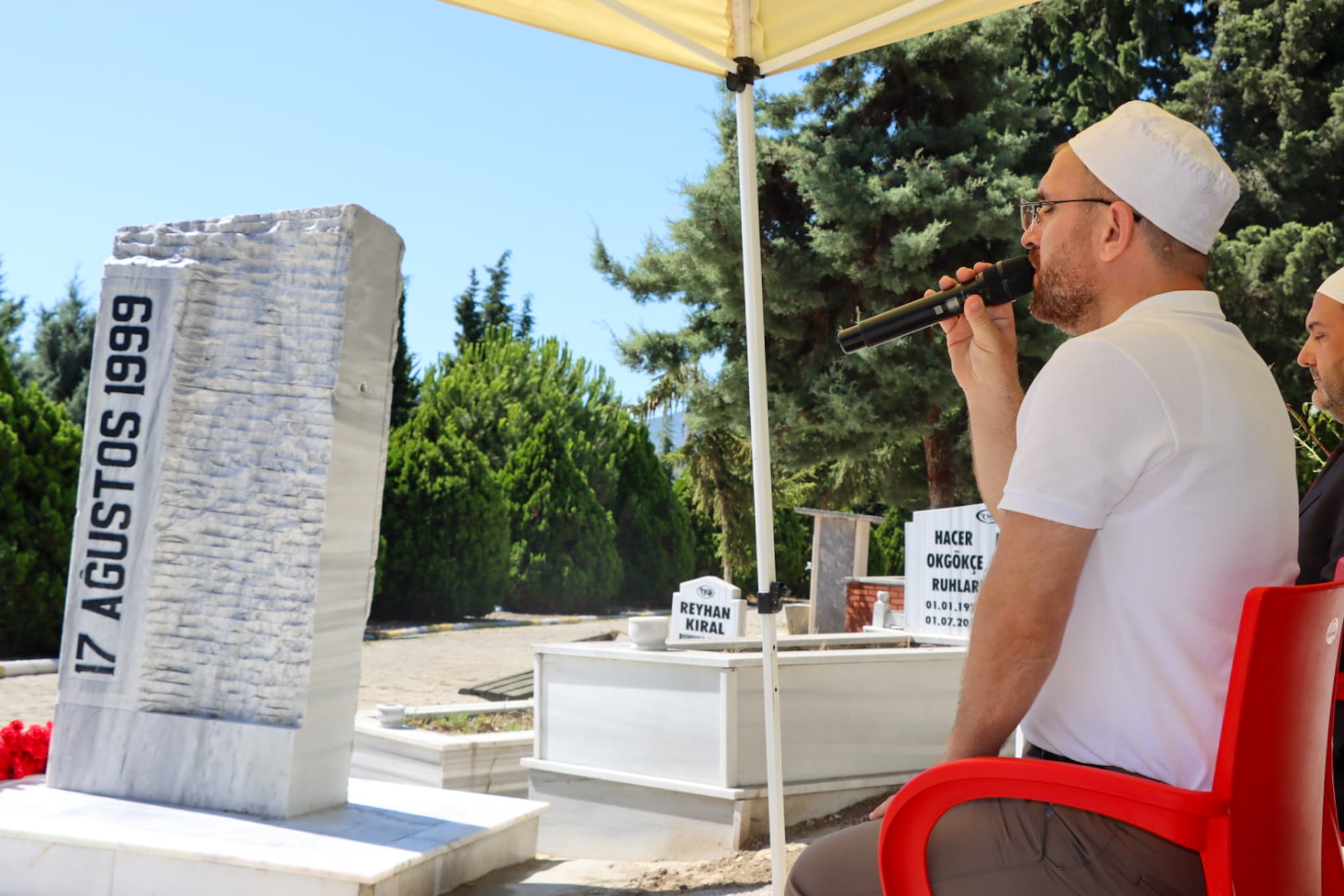 Törende depremde hayatını kaybeden vatandaşlar için Kuran-ı Kerim okundu ve ardından Başkan Gürel ve diğer protokol üyeleri tarafından ölenlerin mezarlarına karanfil bırakıldı.